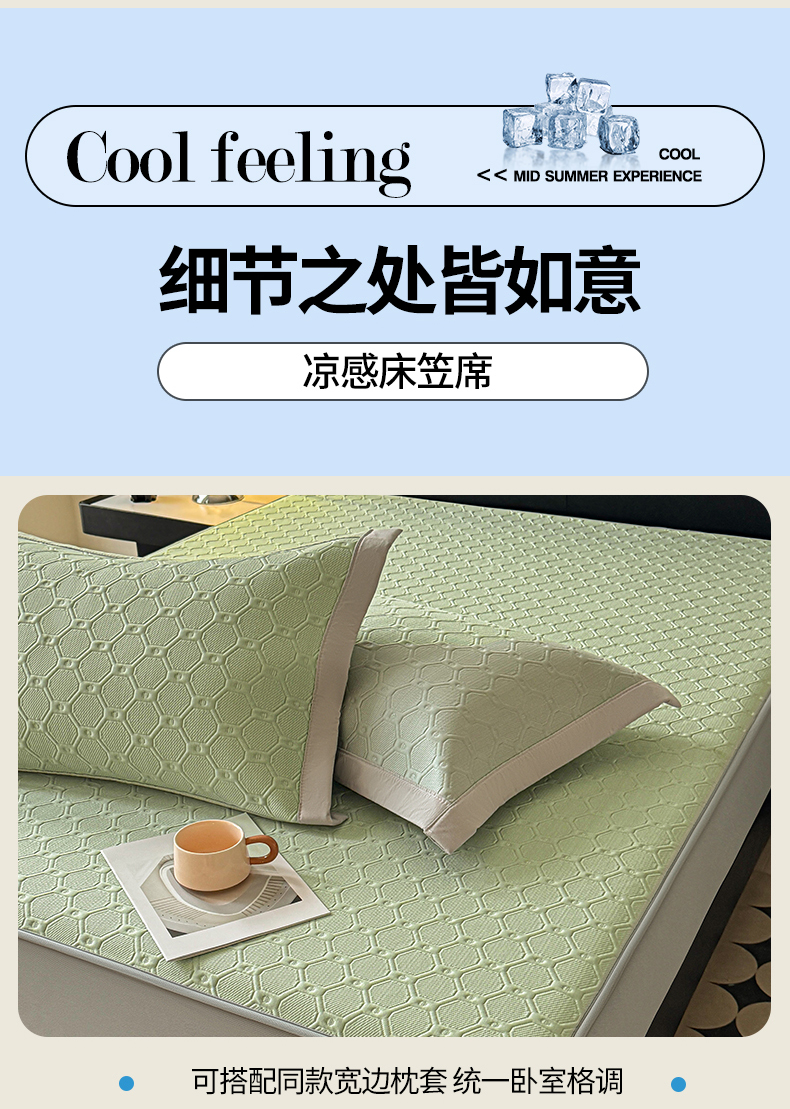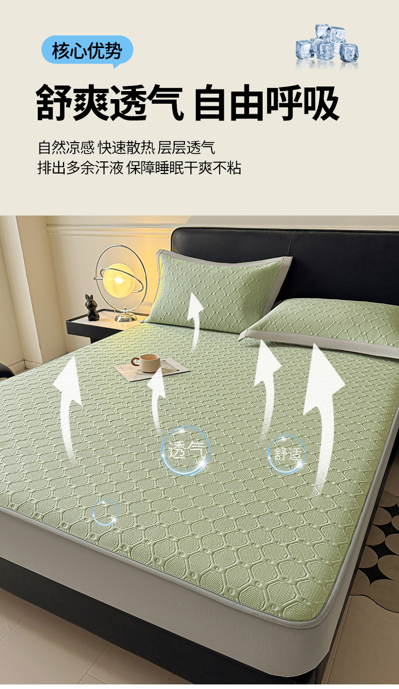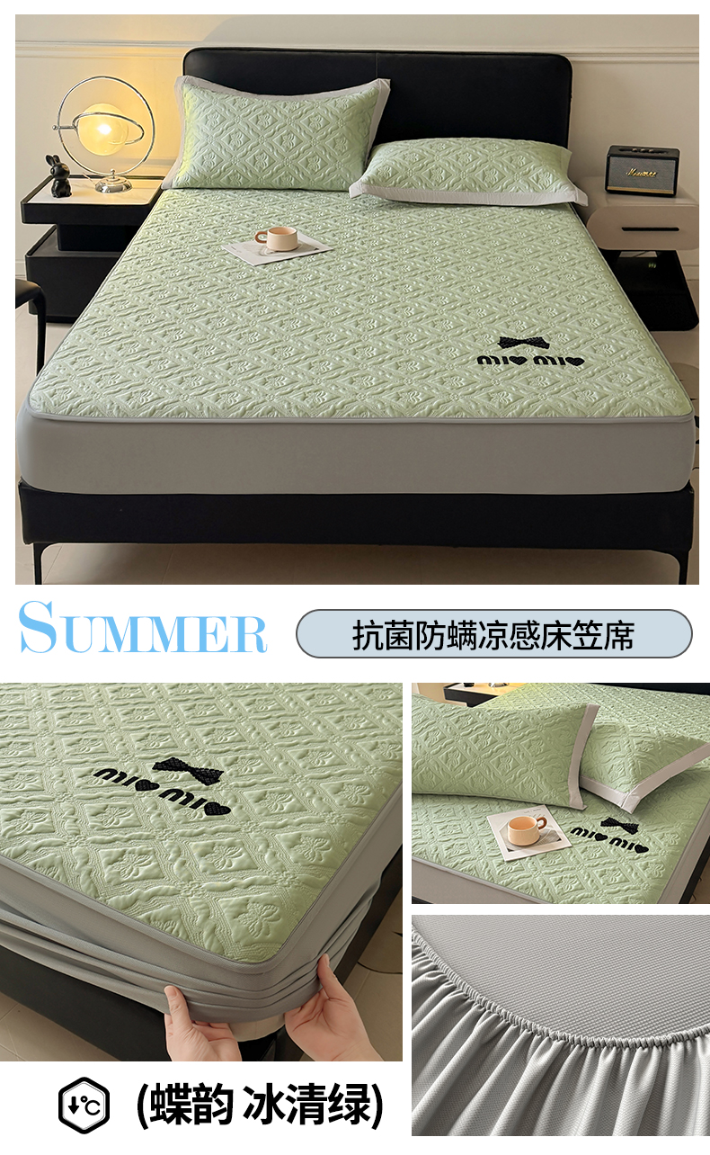 当前位置: 91家纺网 > 商品网购 > 床上用品 > 凉席 > 其他凉席 > 玉相逢 2026新款刺绣实拍爆款凉豆豆凉席100%PE乙伦绣花可水洗床席席子-床笠款 菱格 冰清绿-床笠款