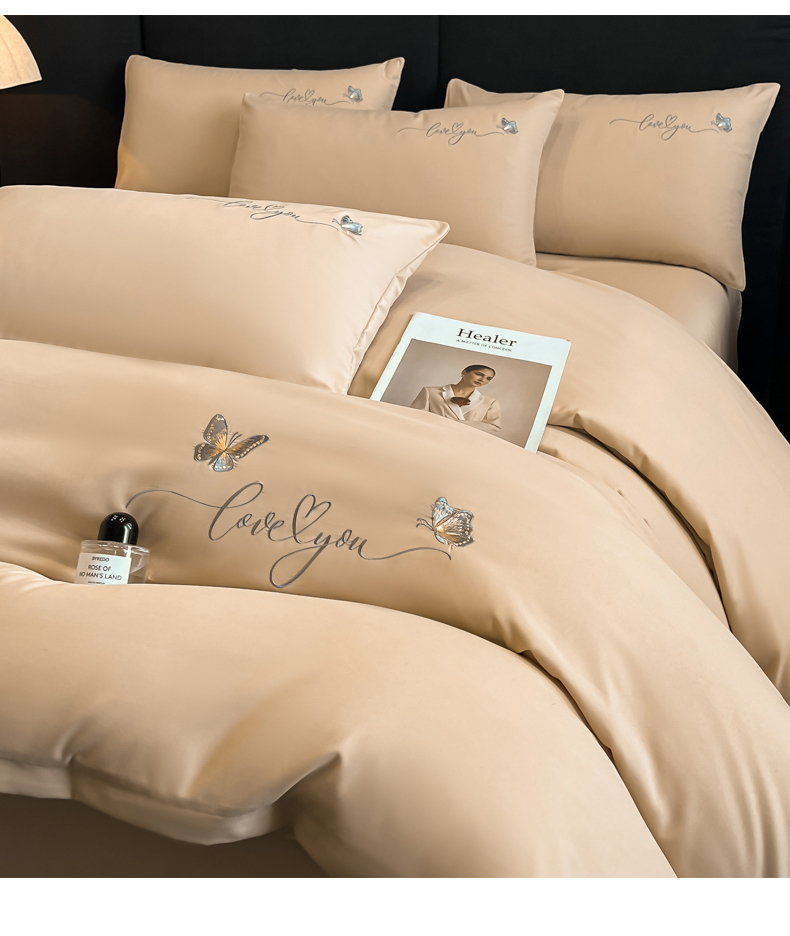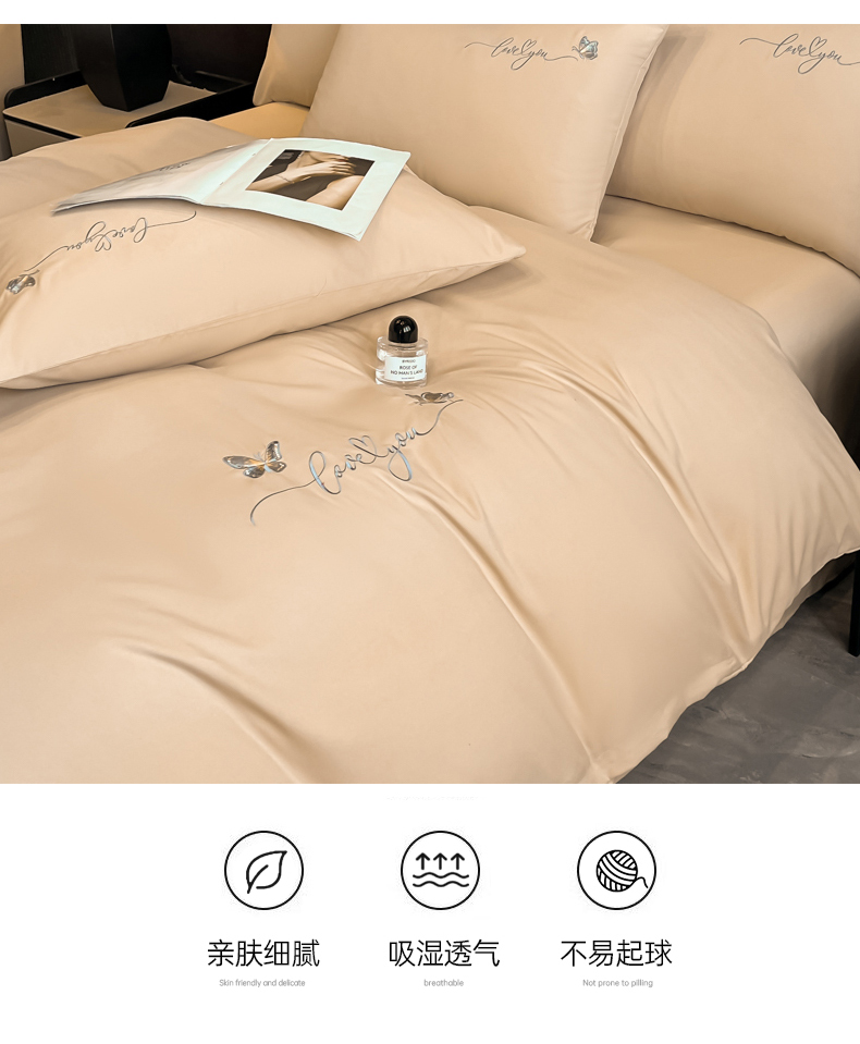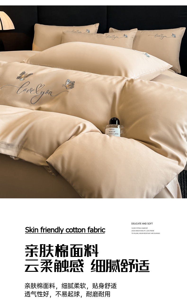 经年 2026春夏新款亲肤棉加厚磨毛刺绣四件套-蝶舞 蝶舞-香槟