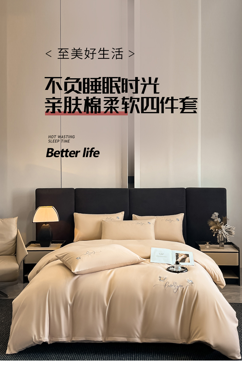 (总)经年 2026春夏新款亲肤棉刺绣四件套-励志,励志-粉,励志-蓝,励志-浅灰,励志-香槟