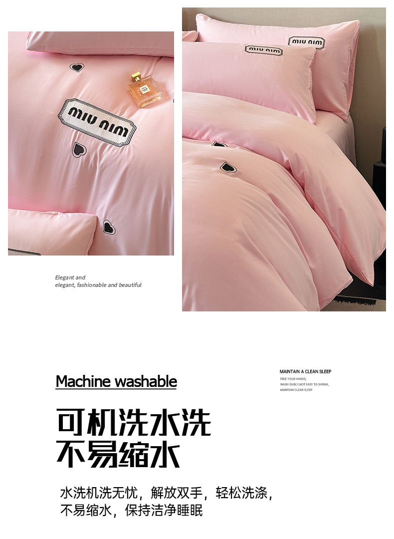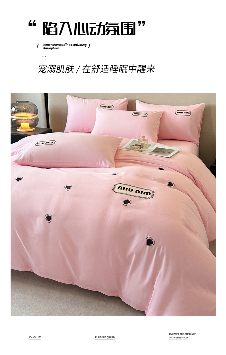 经年 2026春夏新款亲肤棉加厚磨毛刺绣四件套-缪斯 缪斯-粉