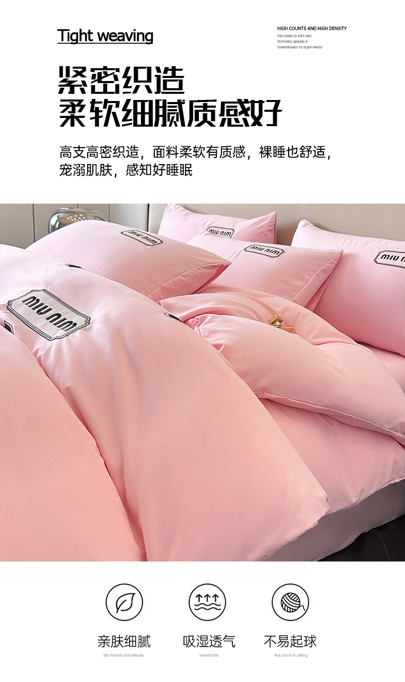 商品名称:经年 2026春夏新款亲肤棉加厚磨毛刺绣四件套-缪斯 缪斯-粉