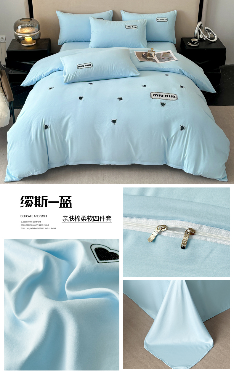 (总)经年 2026春夏新款亲肤棉刺绣四件套-励志,励志-粉,励志-蓝,励志-浅灰,励志-香槟