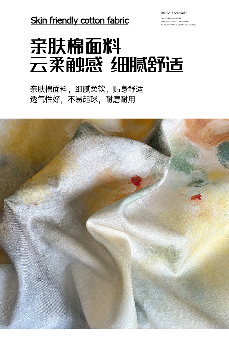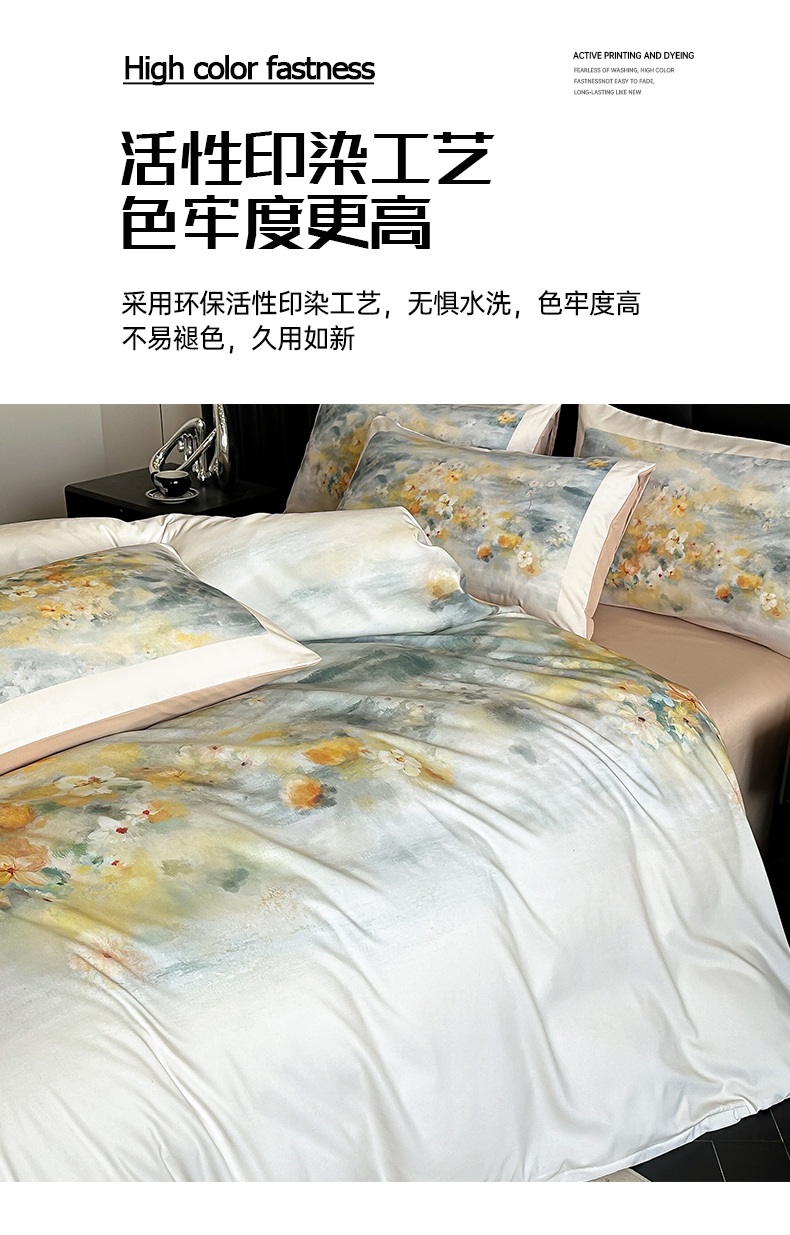 商品名称:经年 2026春夏新款亲肤棉加厚磨毛数码印花四件套-倾城 倾城-香槟