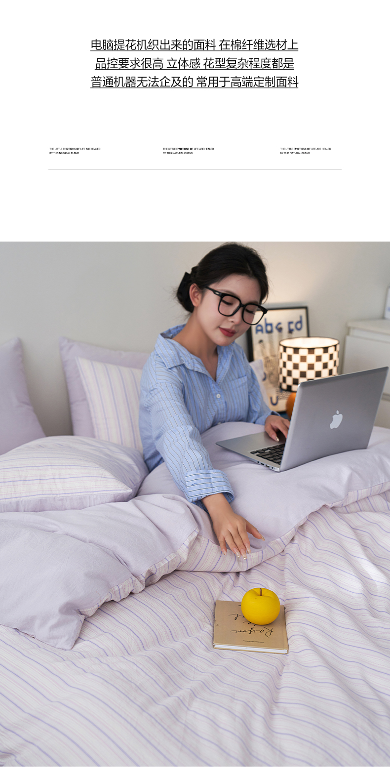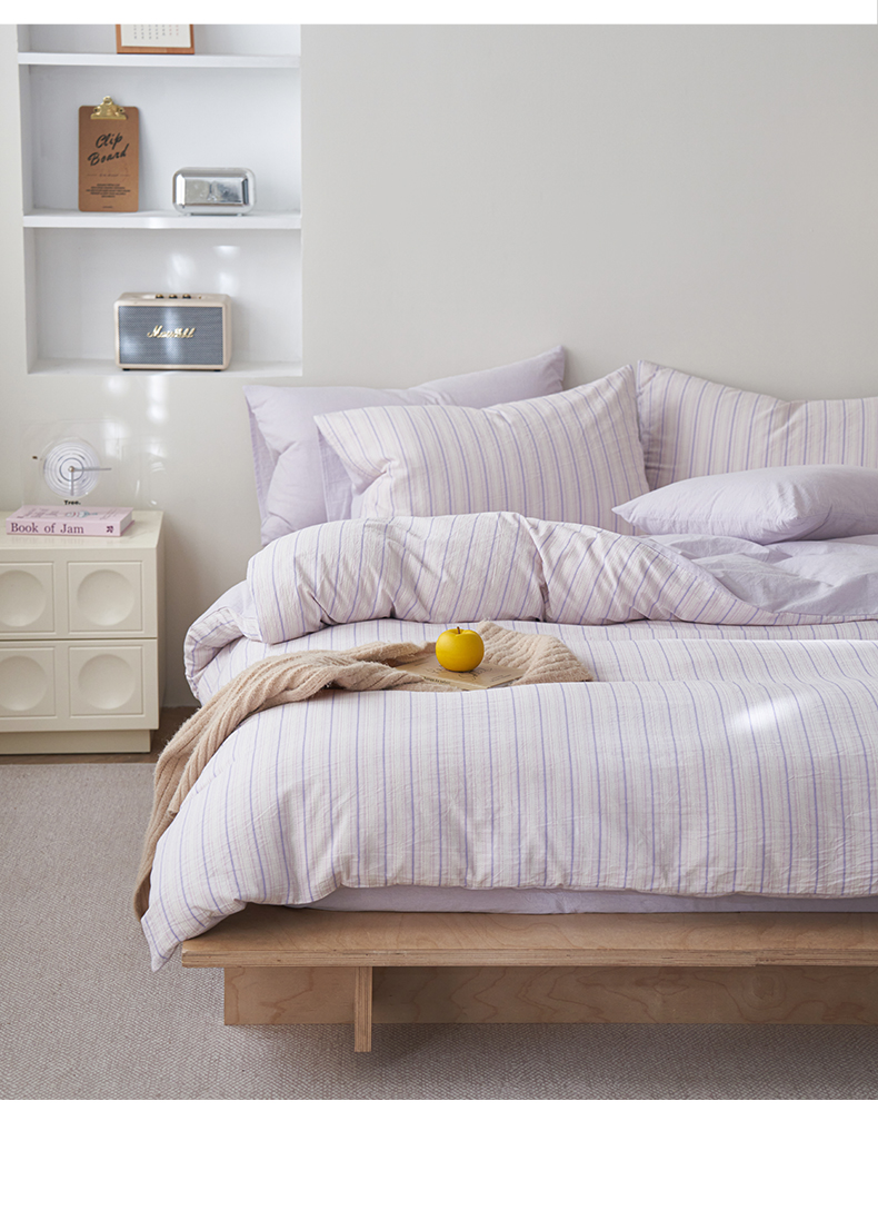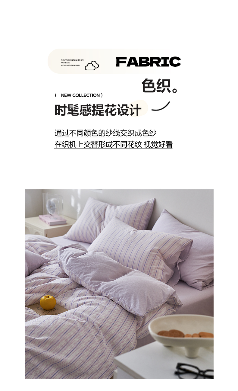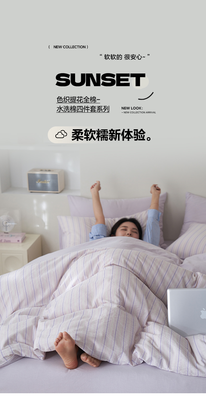 当前位置: 91家纺网 > 商品网购 > 床品套件 > 四件套 > 全棉普通四件套 > 如一 2026新款色织小提花条纹全棉纯棉水洗棉四件套 织野-紫