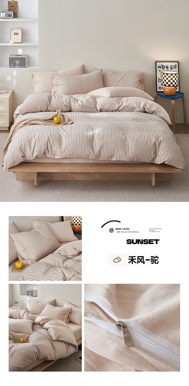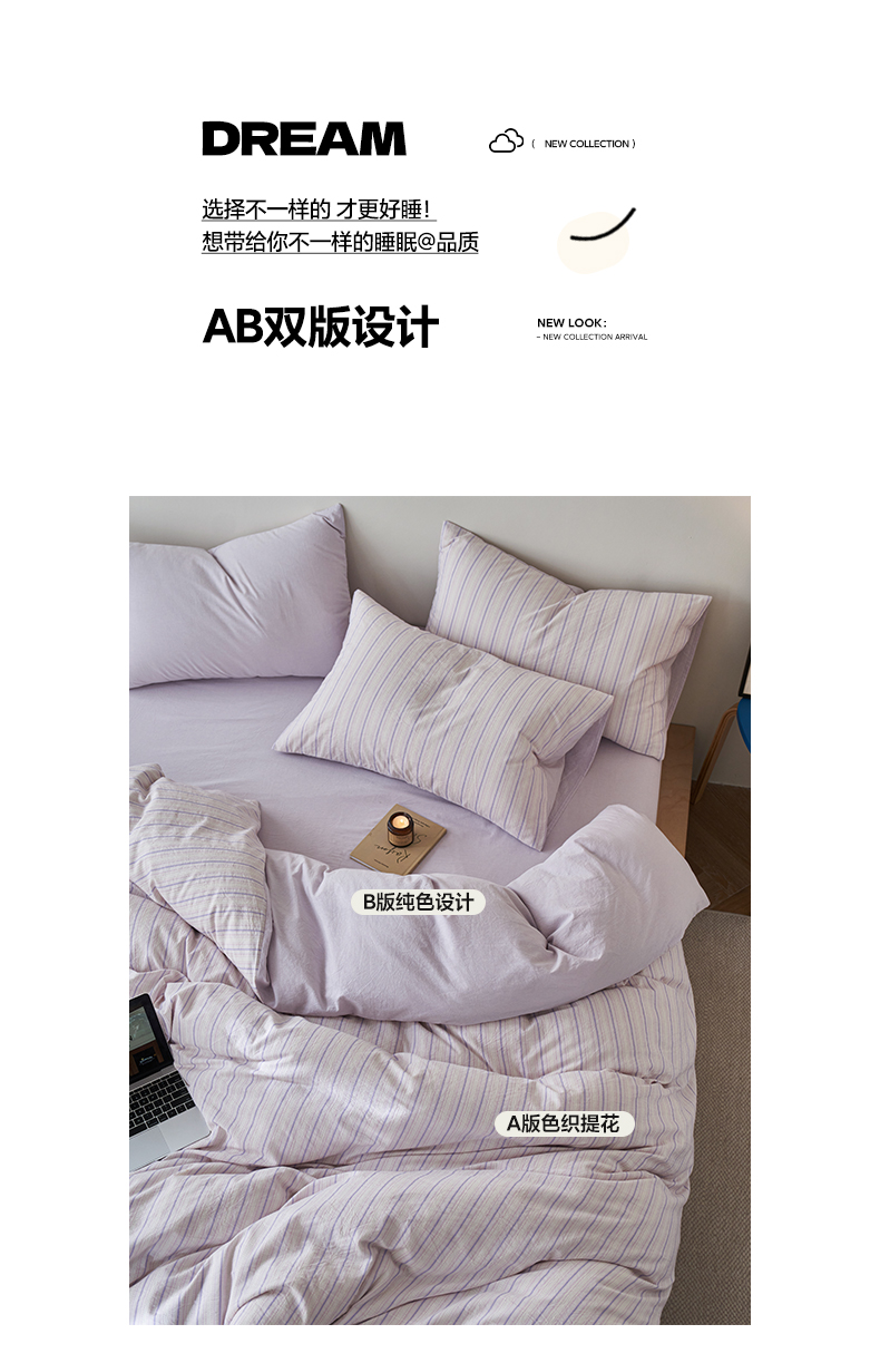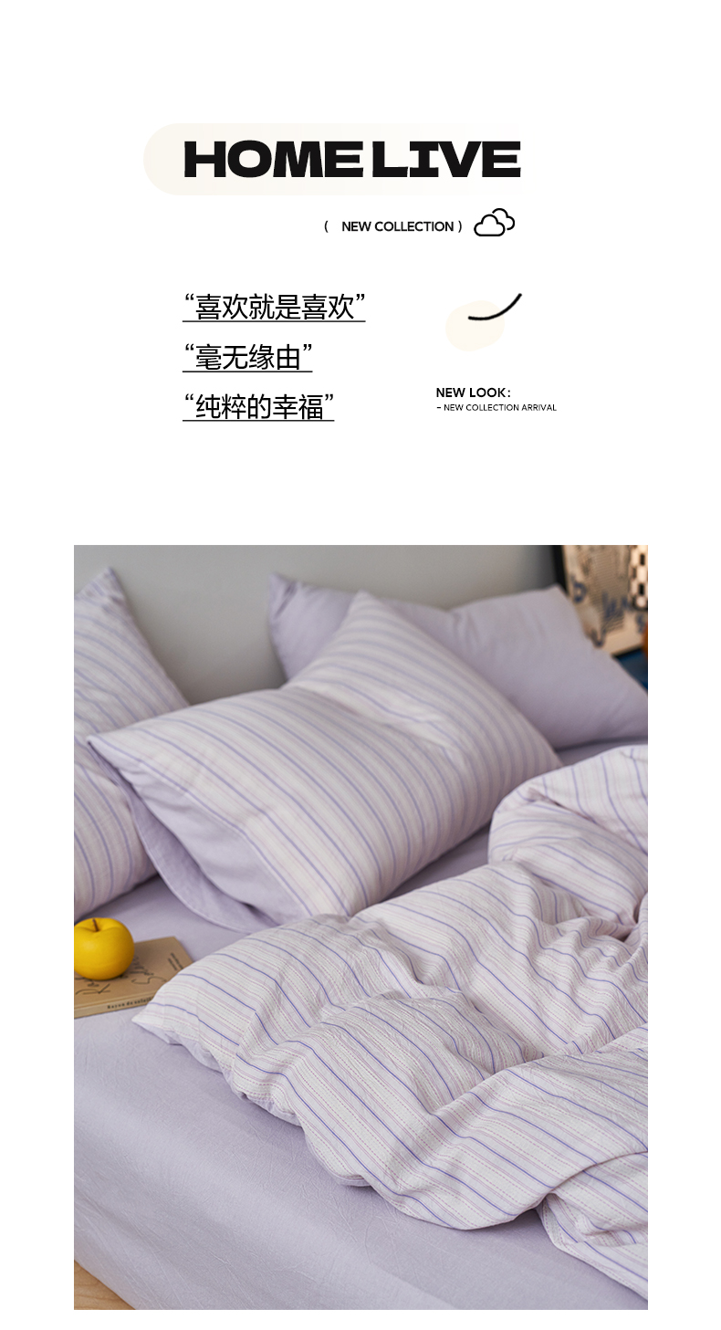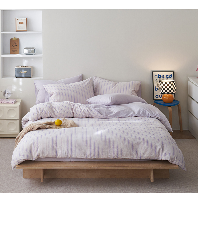 当前位置: 91家纺网 > 商品网购 > 床品套件 > 四件套 > 全棉普通四件套 > 如一 2026新款色织小提花条纹全棉纯棉水洗棉四件套 织野-紫