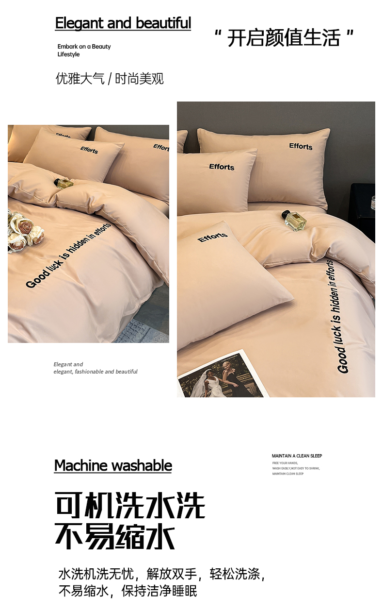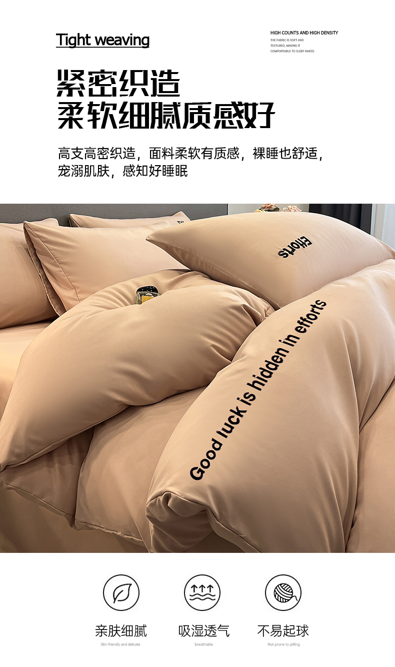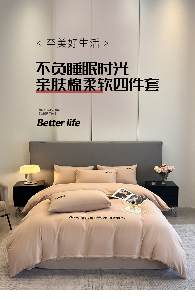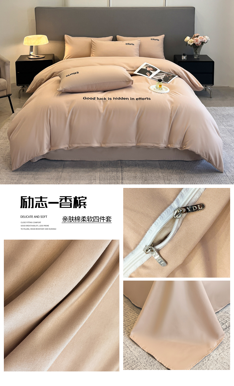 商品名称:经年 2026春夏新款亲肤棉加厚磨毛刺绣四件套-励志 励志-香槟