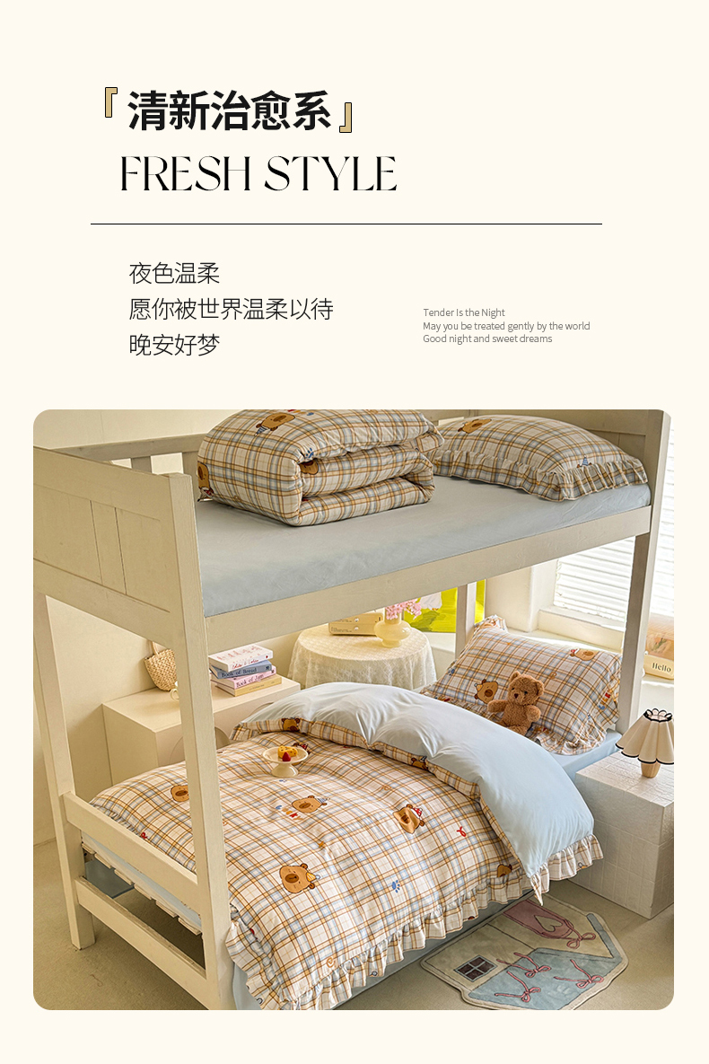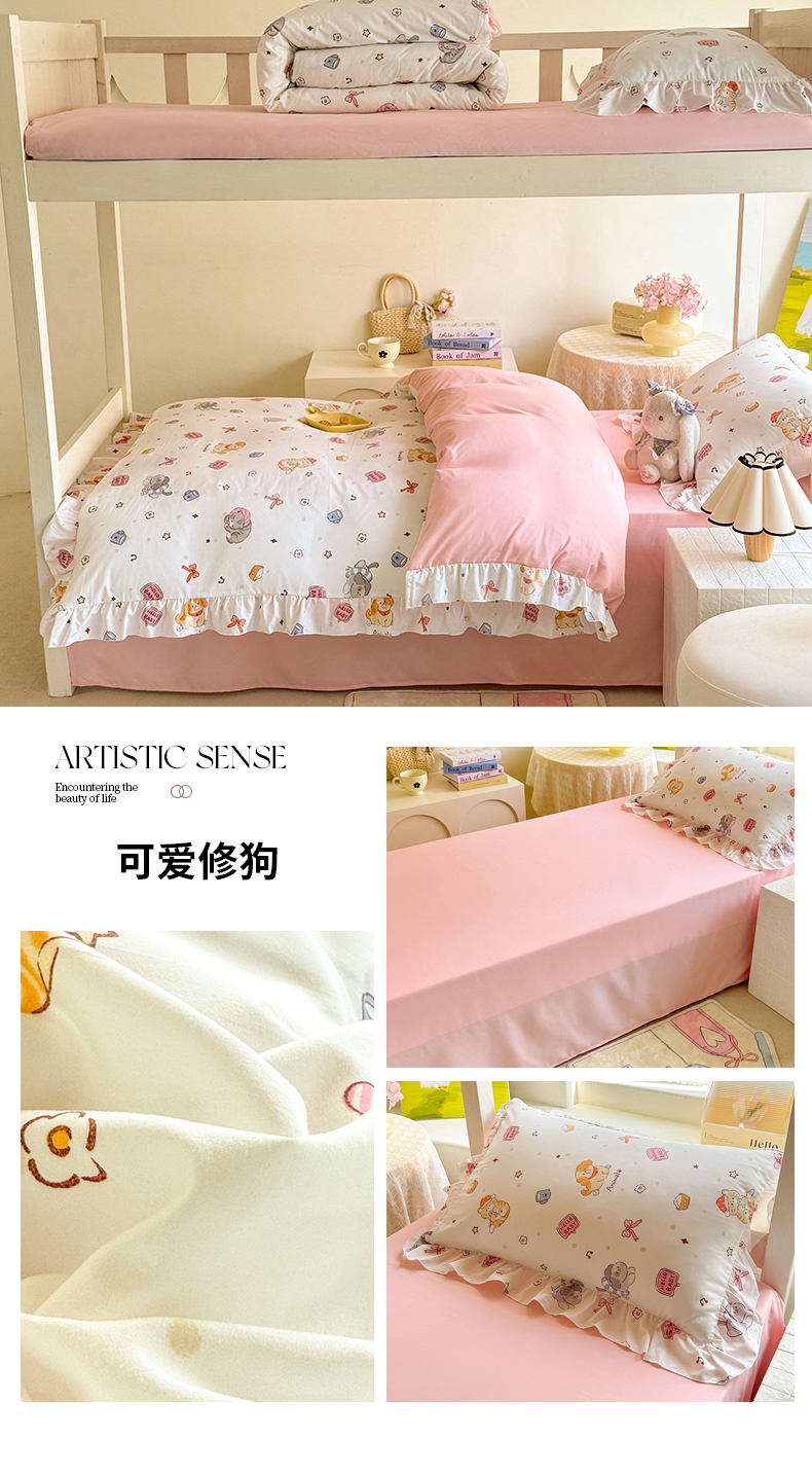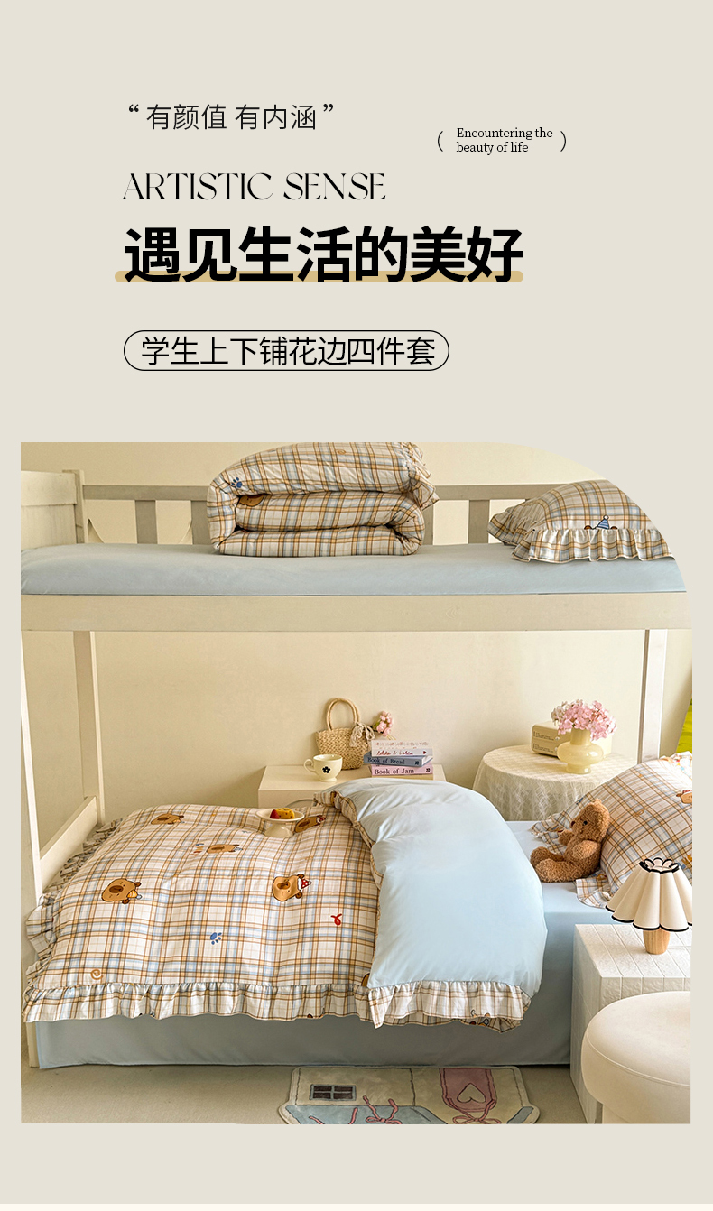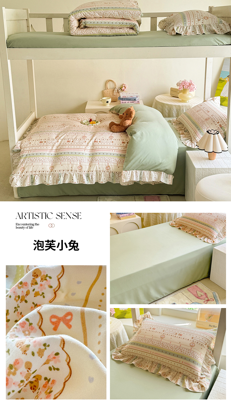 当前位置: 91家纺网 > 商品网购 > 床品套件 > 四件套 > 水洗棉四件套 > 经年 2026新款学生季上下铺韩版花边水洗云朵棉学生宿舍三件套四件套 卡皮吧啦