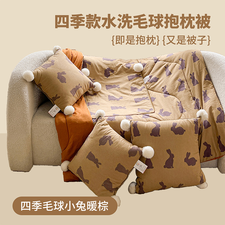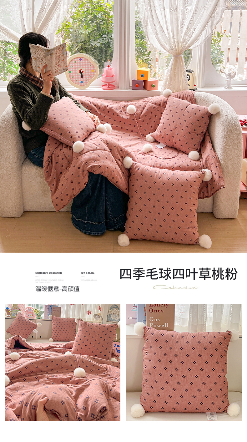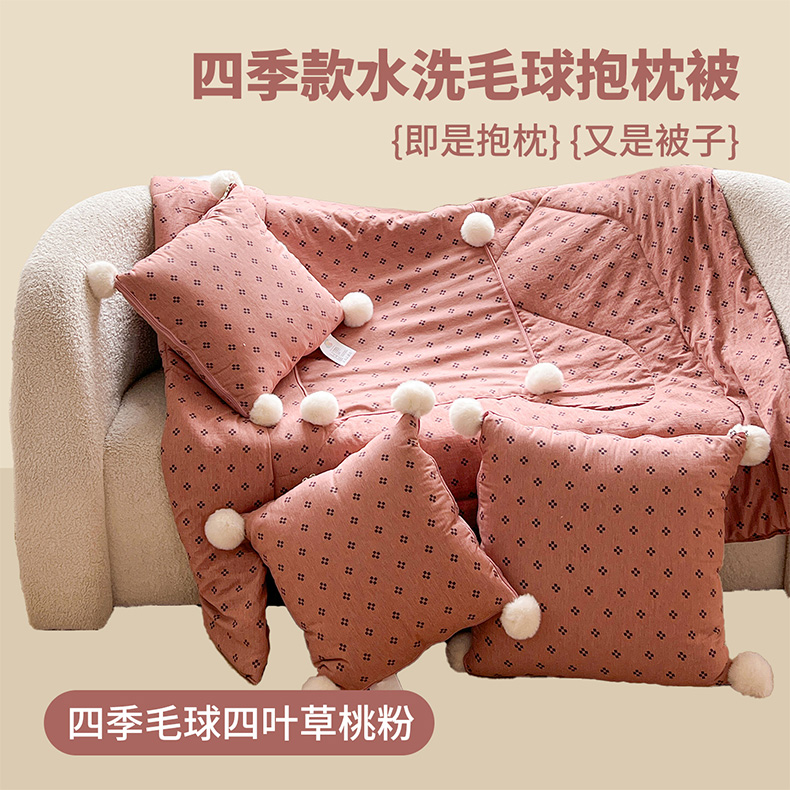 商品名称:古本家居 2026新款四季水洗毛球系列抱枕被 四季毛球四叶草焦糖