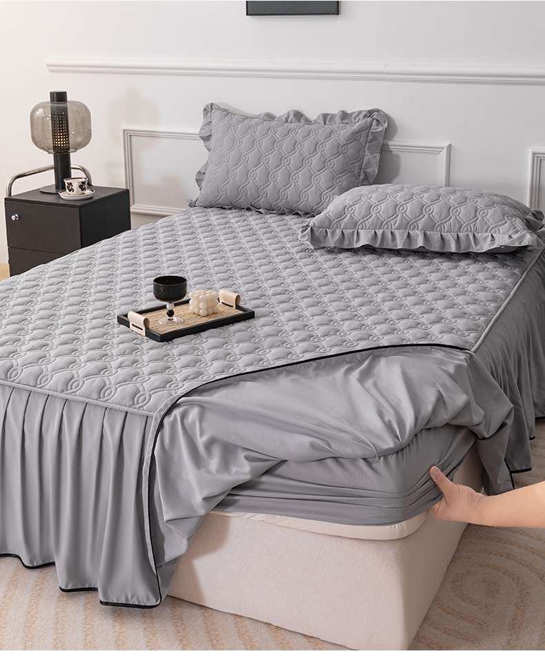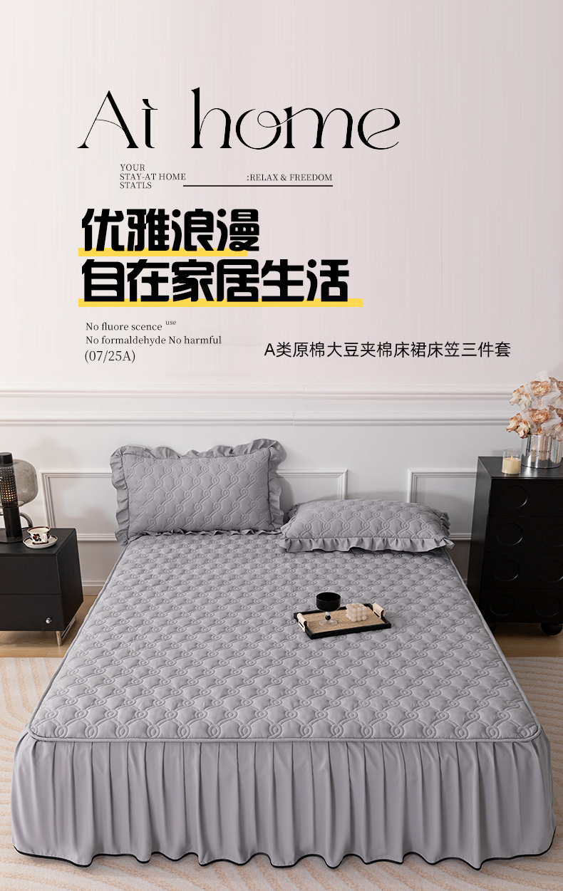 • 91家纺网 家纺一手货源 找家纺 乐蔻家纺 2026春夏新款新款A类原棉大豆夹棉床裙床笠四件套床笠单件-水仙花 水仙花-高级灰