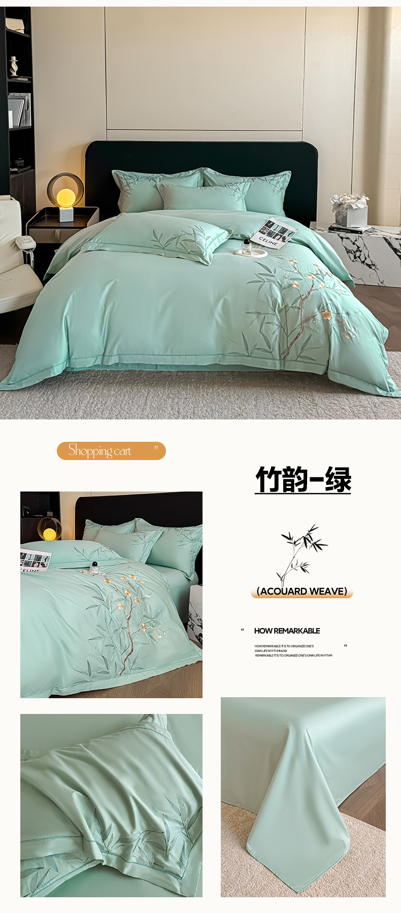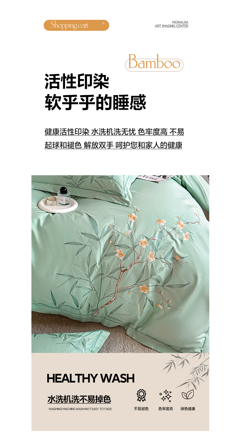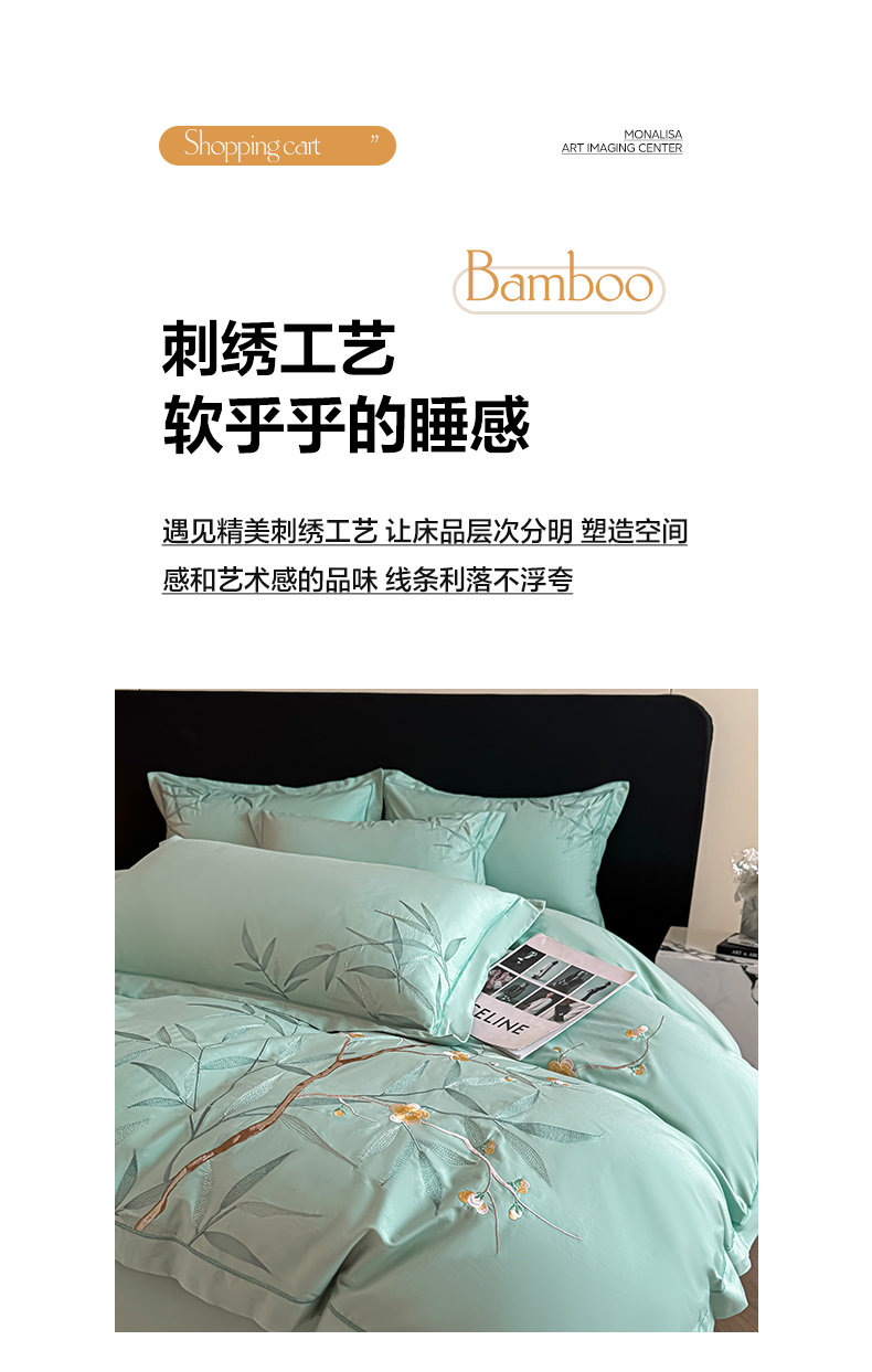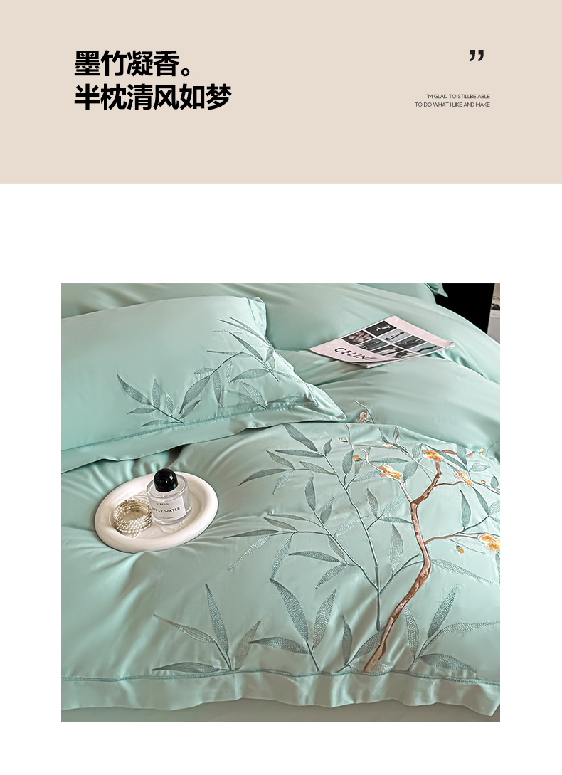 商品名称:湘雪家居 2026新款纯棉全棉长绒棉刺绣绣花高端礼盒四件套-竹韵系列 竹韵-绿