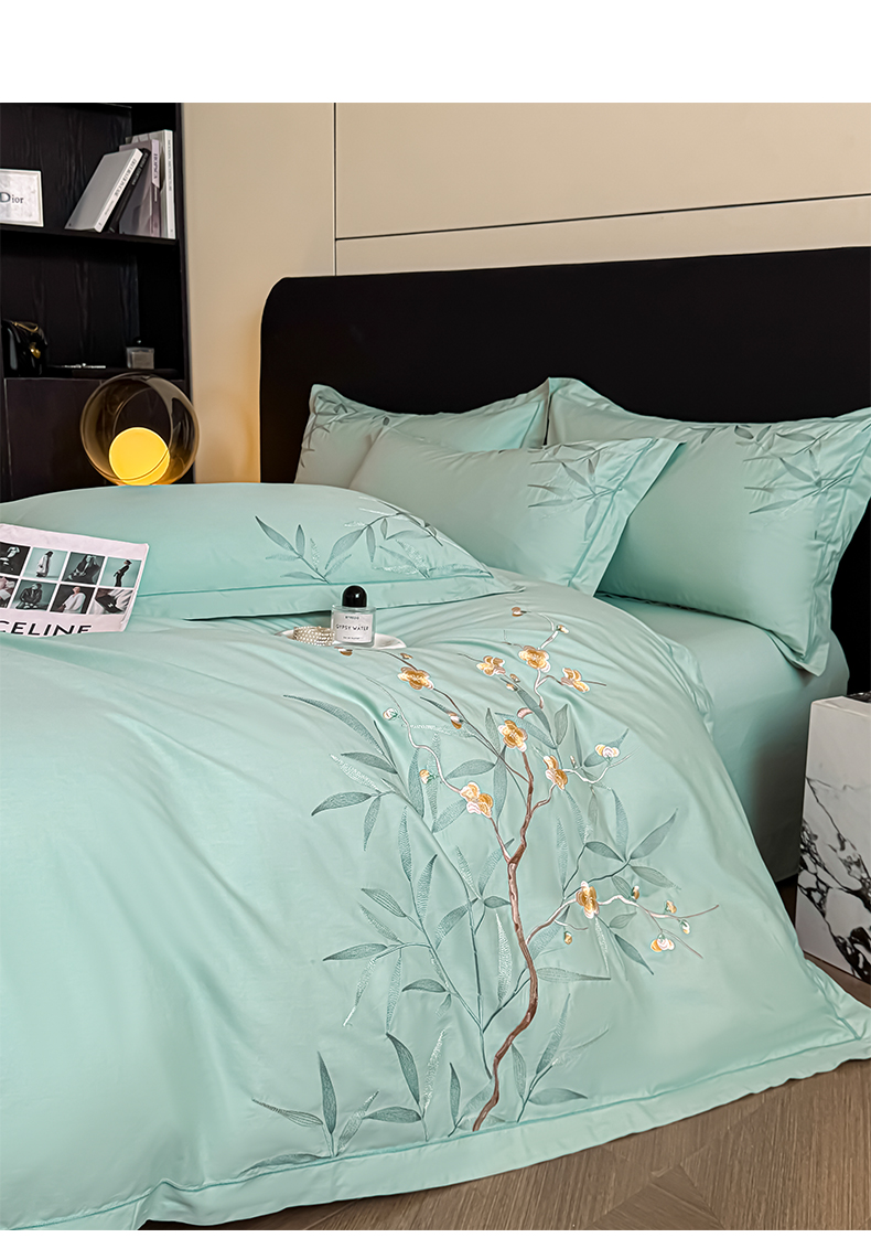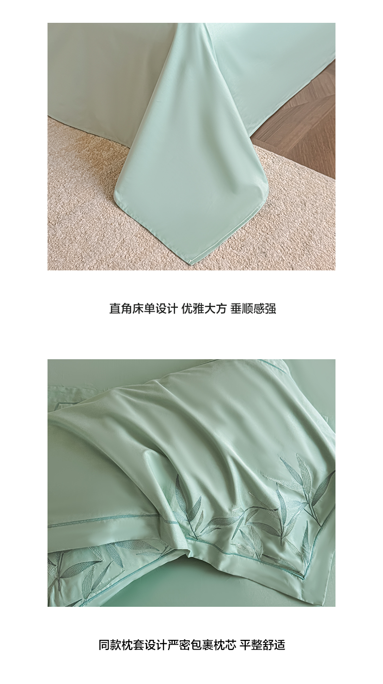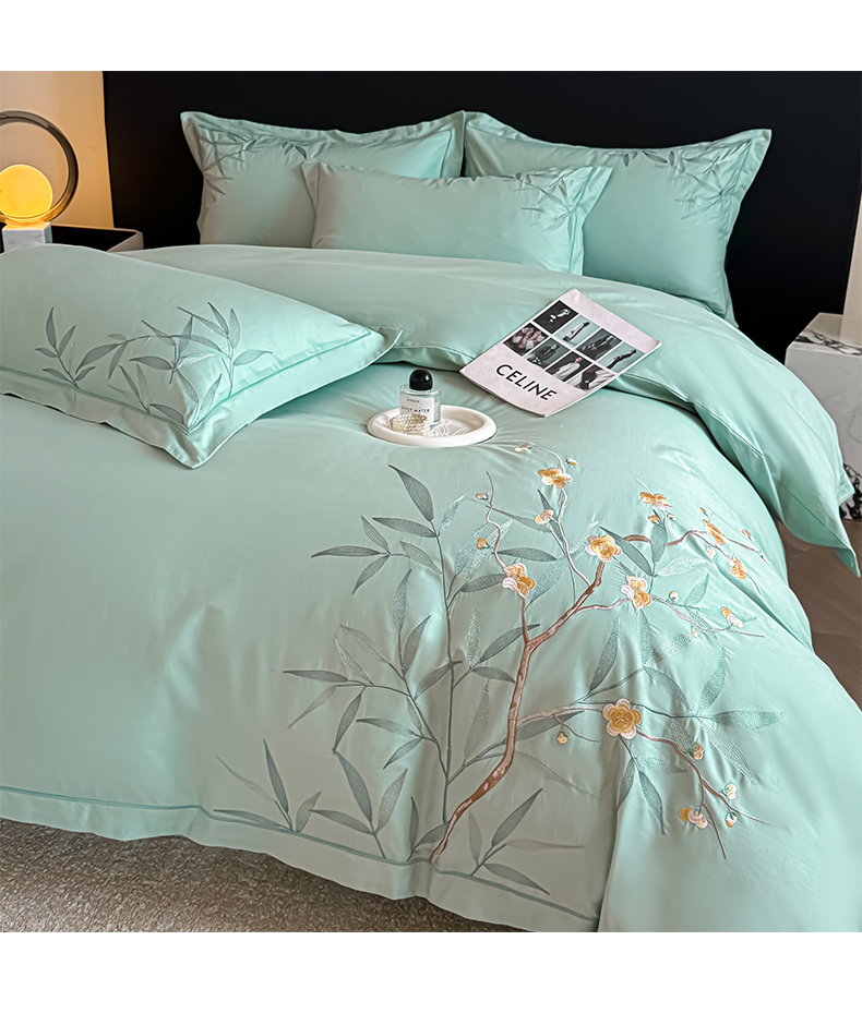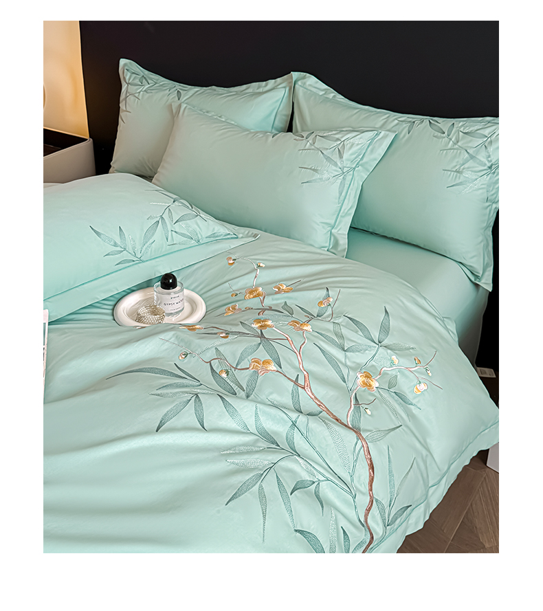 湘雪家居 2026新款纯棉全棉长绒棉刺绣绣花高端礼盒四件套-竹韵系列 竹韵-绿