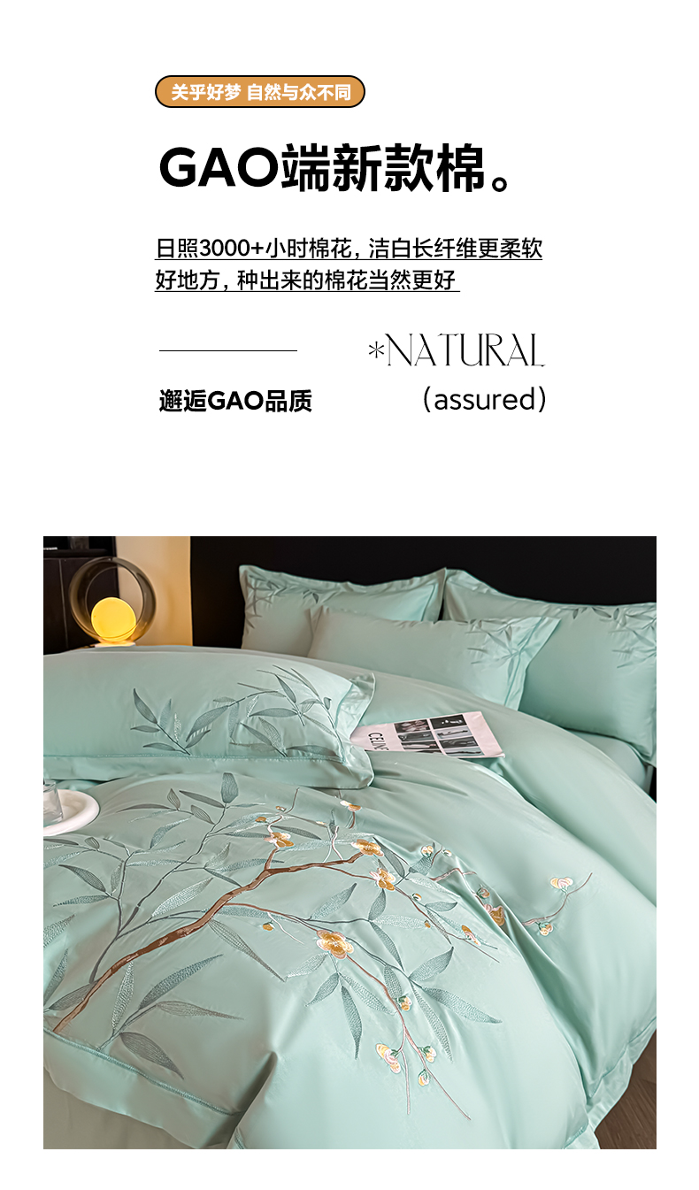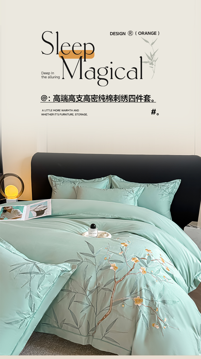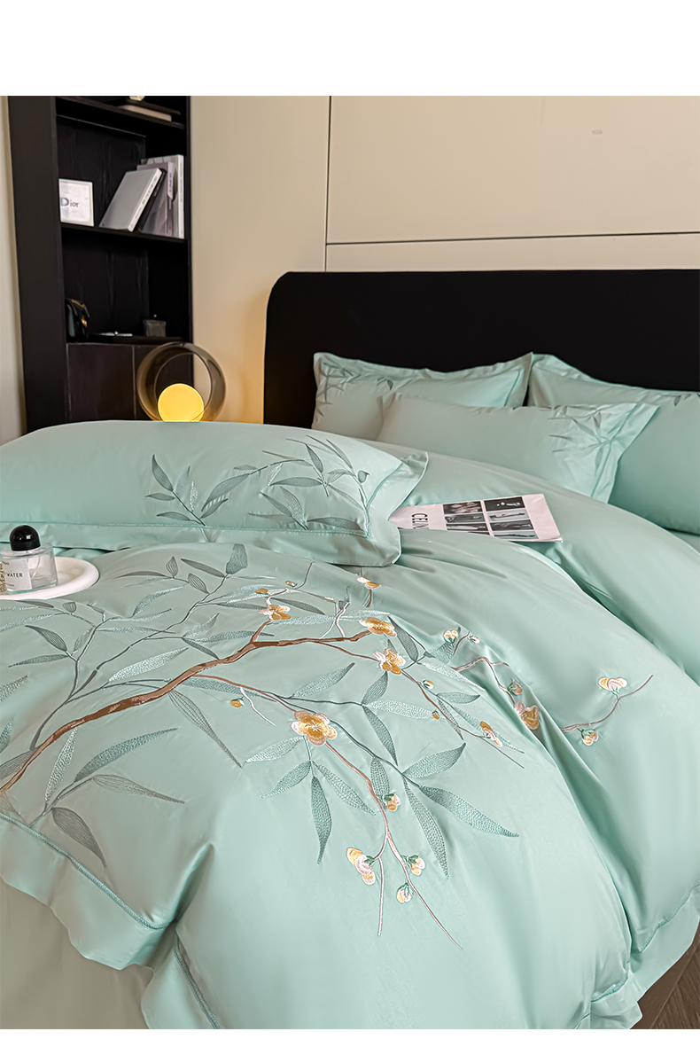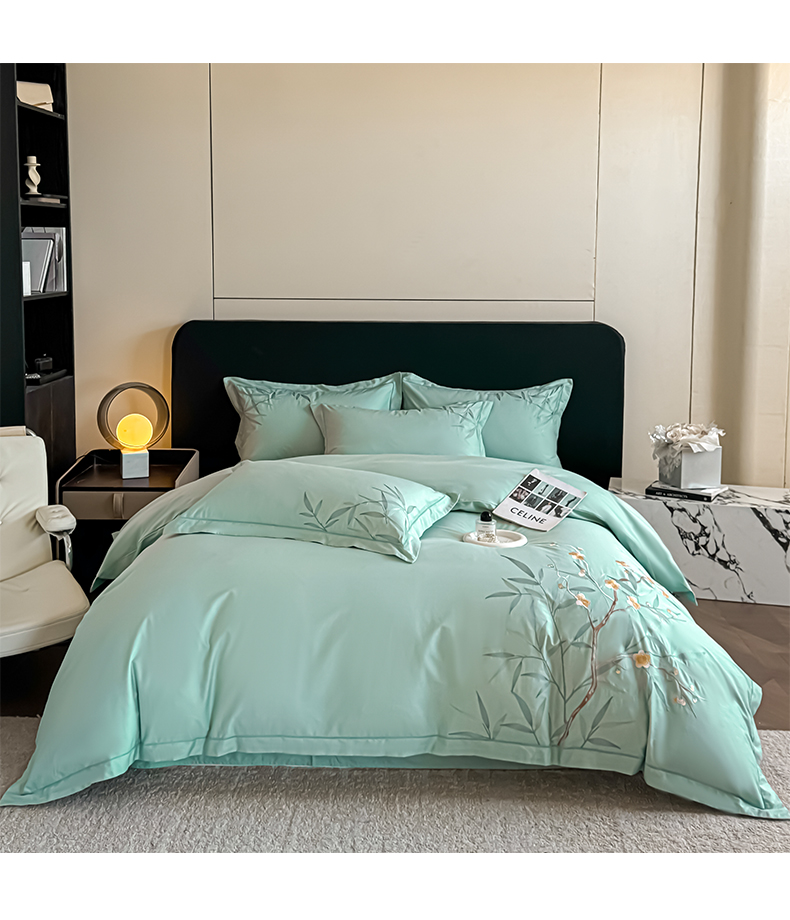 湘雪家居 2026新款纯棉全棉长绒棉刺绣绣花高端礼盒四件套-竹韵系列 竹韵-绿