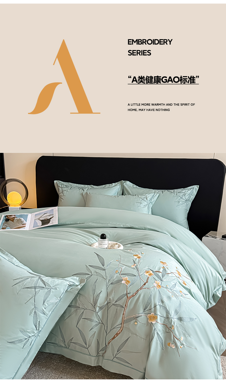 (总)湘雪家居 2026新款纯棉全棉长绒棉刺绣绣花高端礼盒四件套-竹韵系列,竹韵-粉玉,竹韵-高雅白,竹韵-绿,竹韵-浅灰,竹韵-水绿,竹韵-天空蓝,竹韵-天青,竹韵-熏韵紫