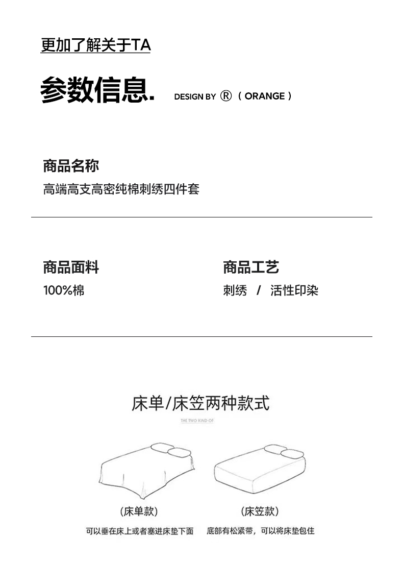 (总)湘雪家居 2025新款高克重纯色刺绣拼角床单床笠床盖款四件套,宾利兰,草绿色,橙橘色,卡琪色,奶白色,浅豆沙,浅灰色,熏韵紫