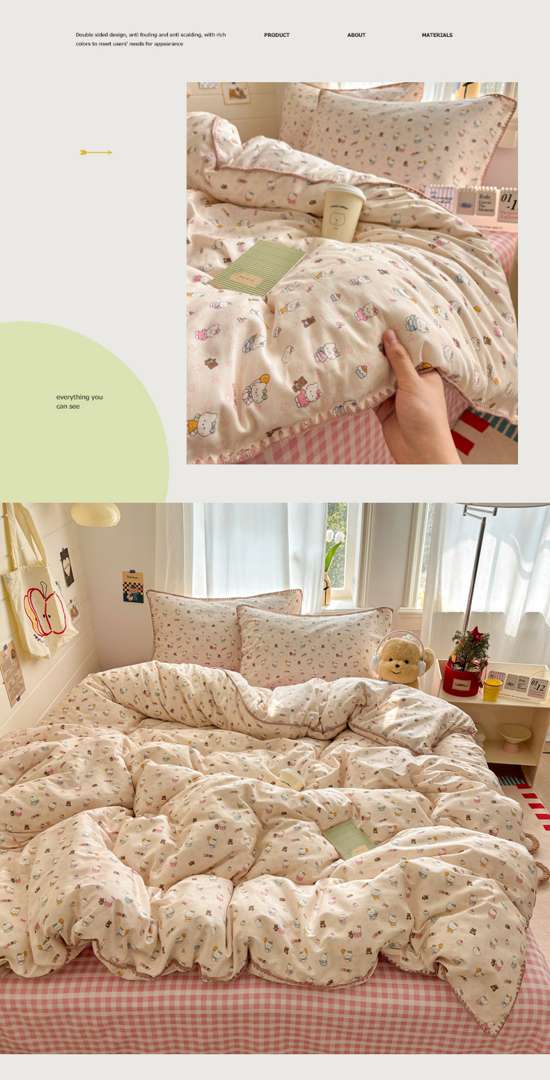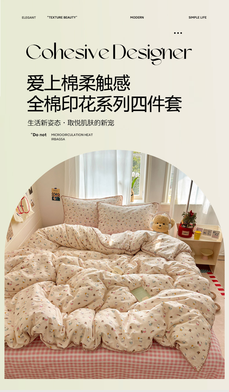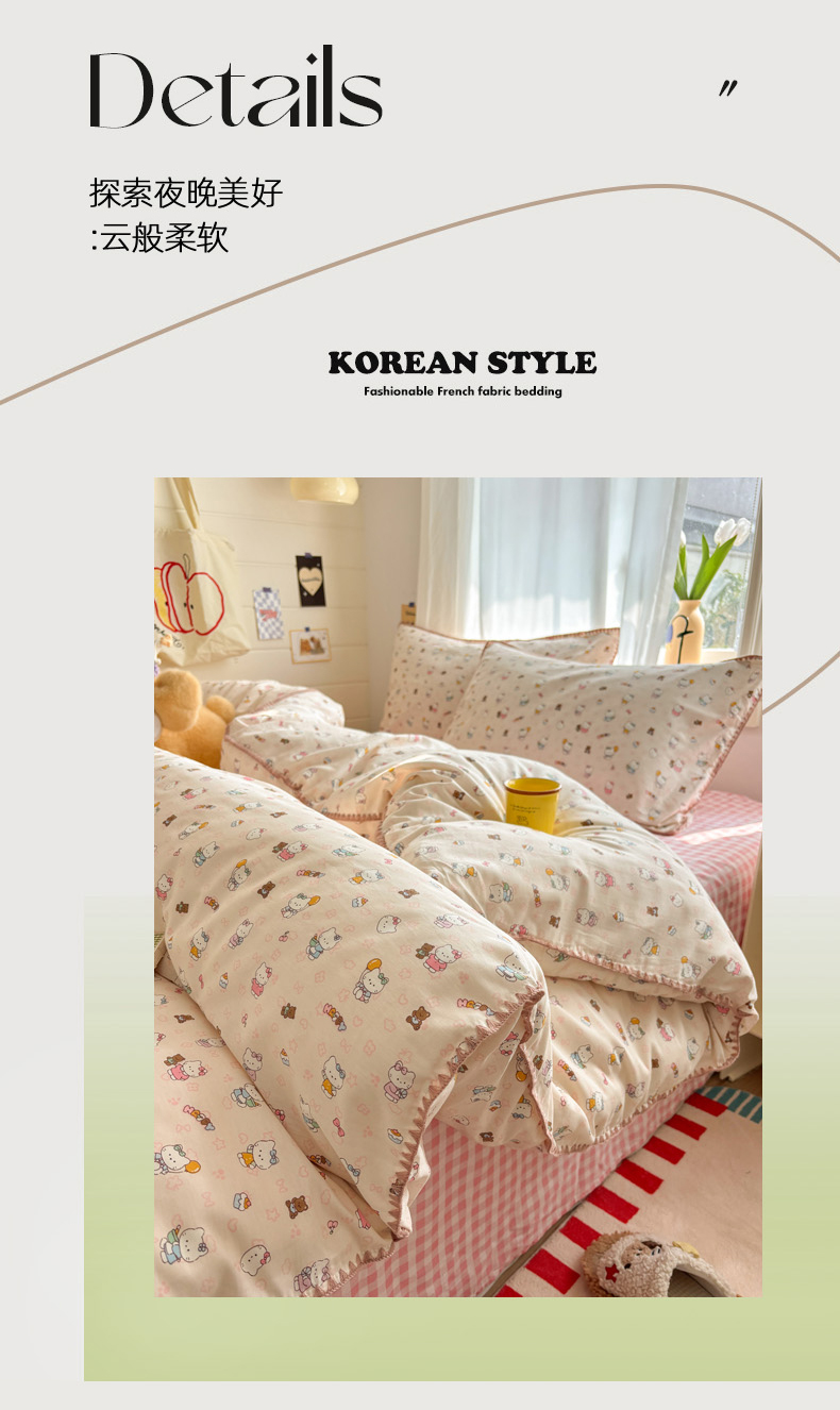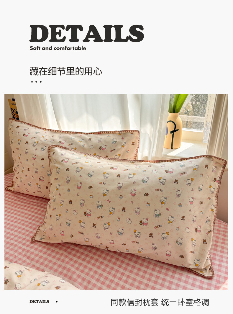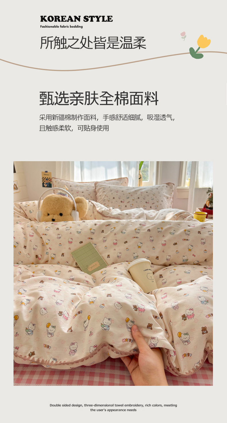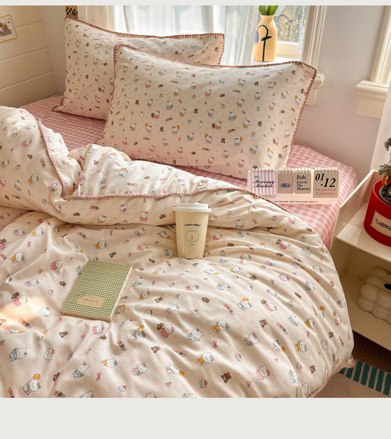 当前位置: 91家纺网 > 商品网购 > 床品套件 > 四件套 > 全棉普通四件套 > 慕尚家纺 2026春夏新款全棉纯棉印花三角针四件套 甜喵KT