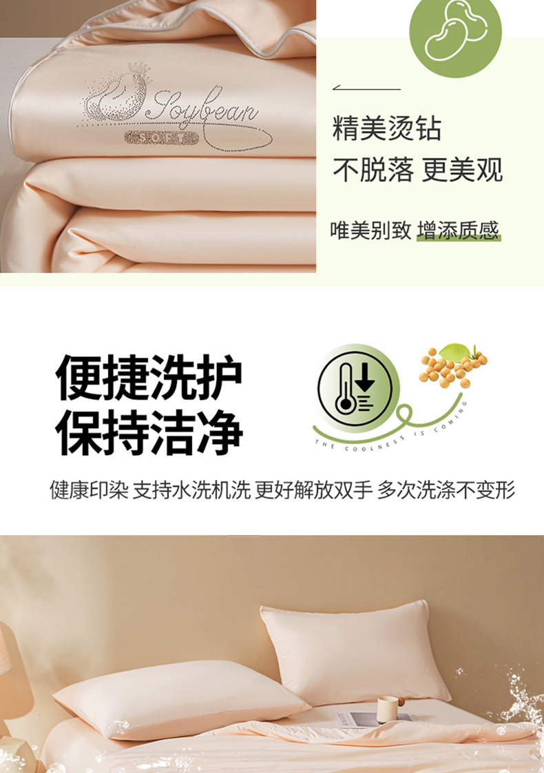 (总)秋泽家纺2026慕丝棉纯色凉感大豆纤维夏被 烫钻工艺四边踩棉不跑棉,冰柔粉,淡雅灰,玫瑰金,抹茶绿,奶油白,清新蓝