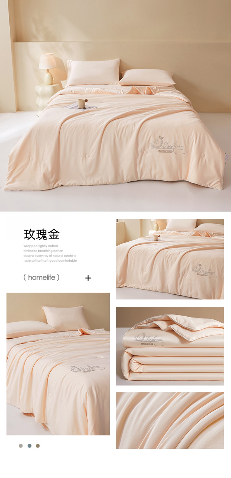 秋泽家纺2026慕丝棉纯色凉感大豆纤维夏被 烫钻工艺四边踩棉不跑棉 玫瑰金