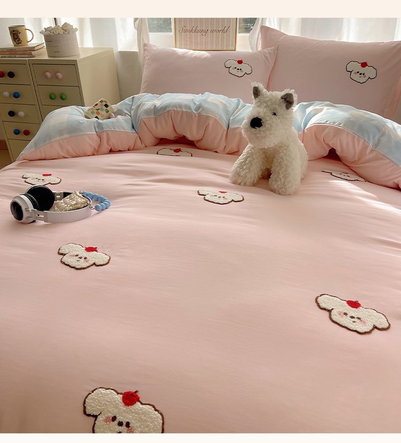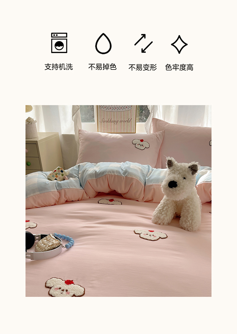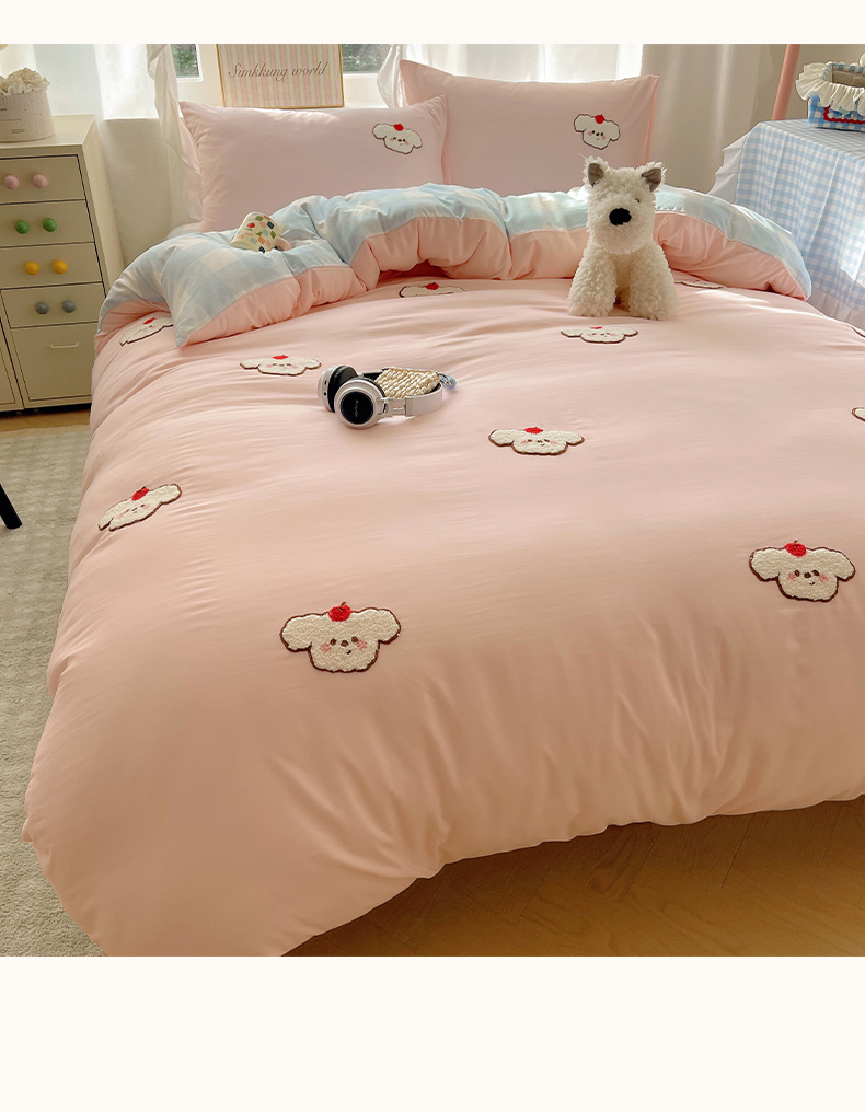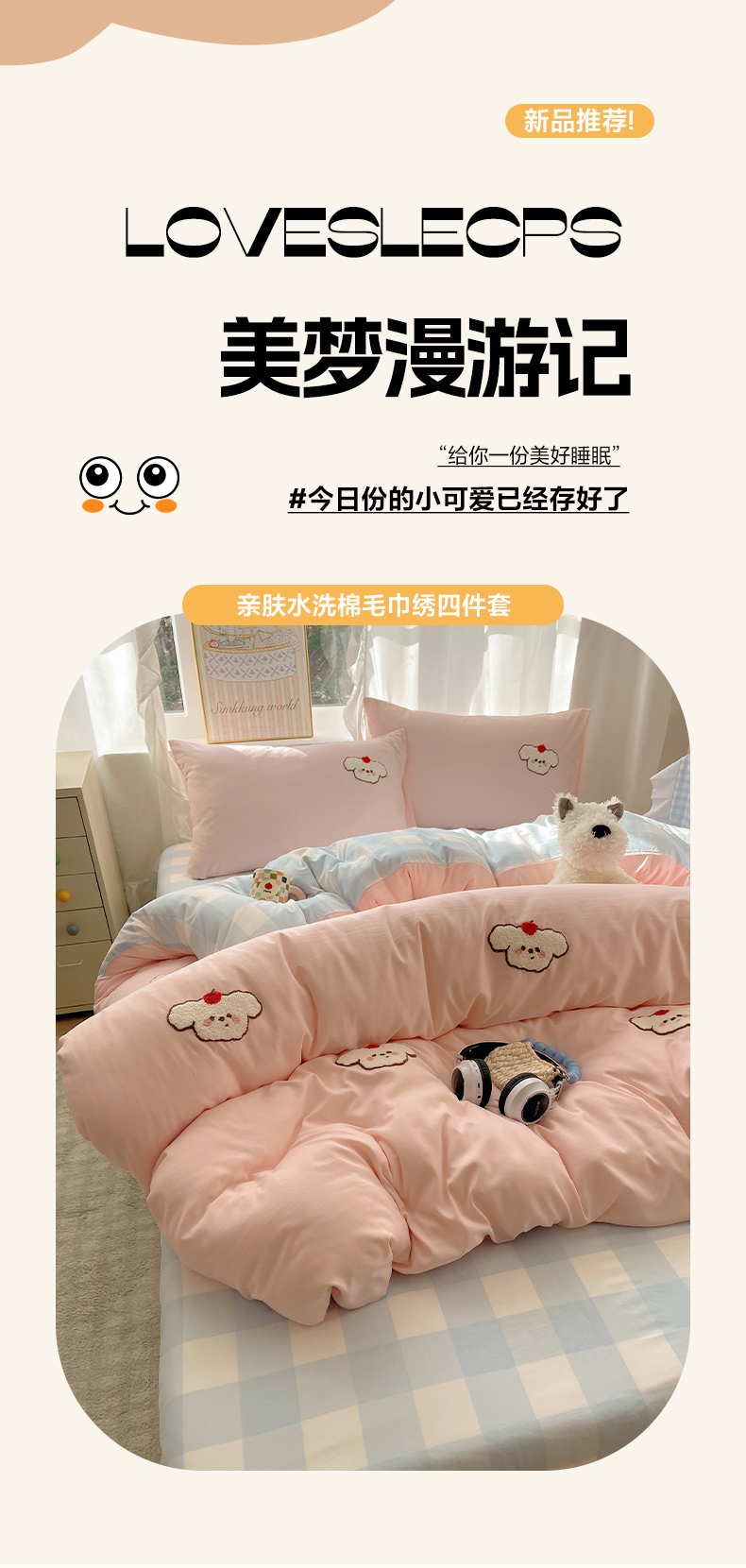 当前位置: 91家纺网 > 商品网购 > 床品套件 > 四件套 > 其它四件套 > 韩都家居 2026春夏新款亲肤舒适毛巾绣四件套(包含买家秀原图) 可爱狗狗