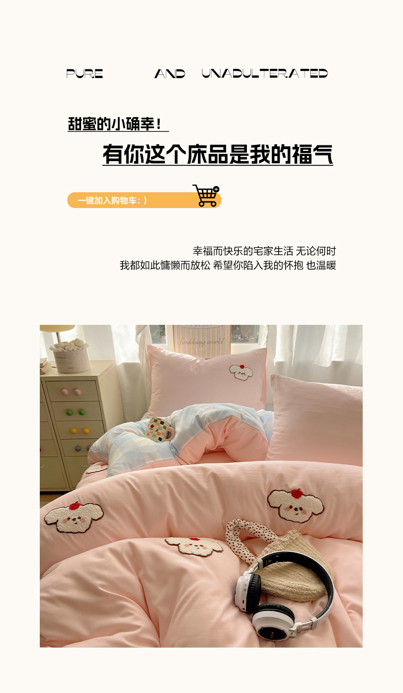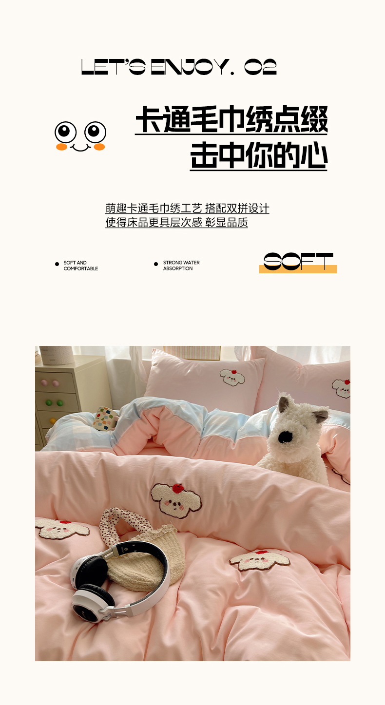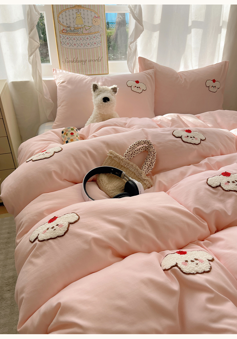 当前位置: 91家纺网 > 商品网购 > 床品套件 > 四件套 > 其它四件套 > 韩都家居 2026春夏新款亲肤舒适毛巾绣四件套(包含买家秀原图) 可爱狗狗