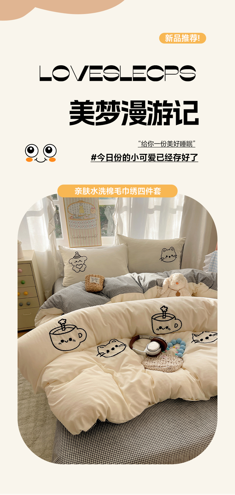 当前位置: 91家纺网 > 商品网购 > 床品套件 > 四件套 > 其它四件套 > 韩都家居 2026春夏新款亲肤舒适毛巾绣四件套(包含买家秀原图) 小画家