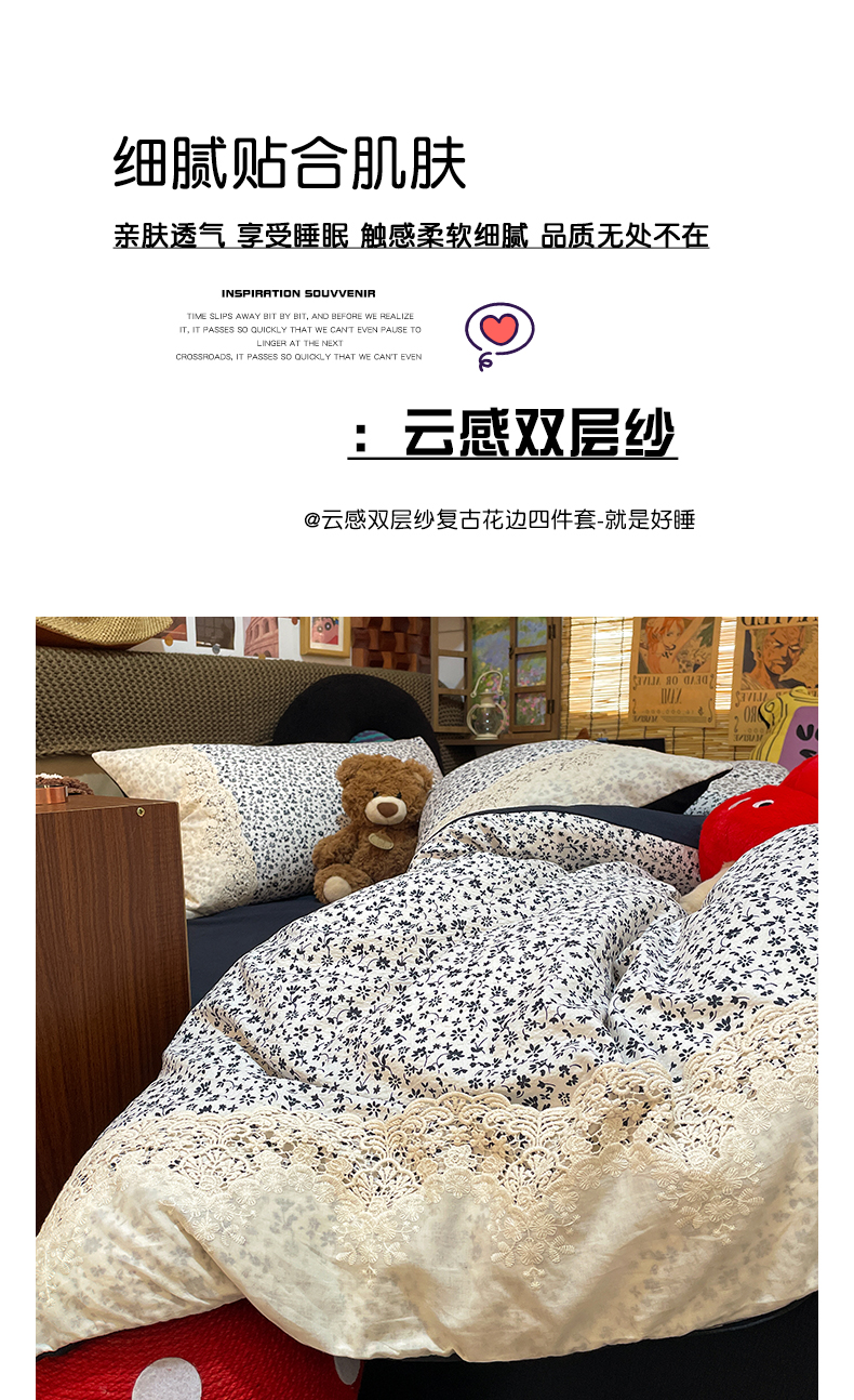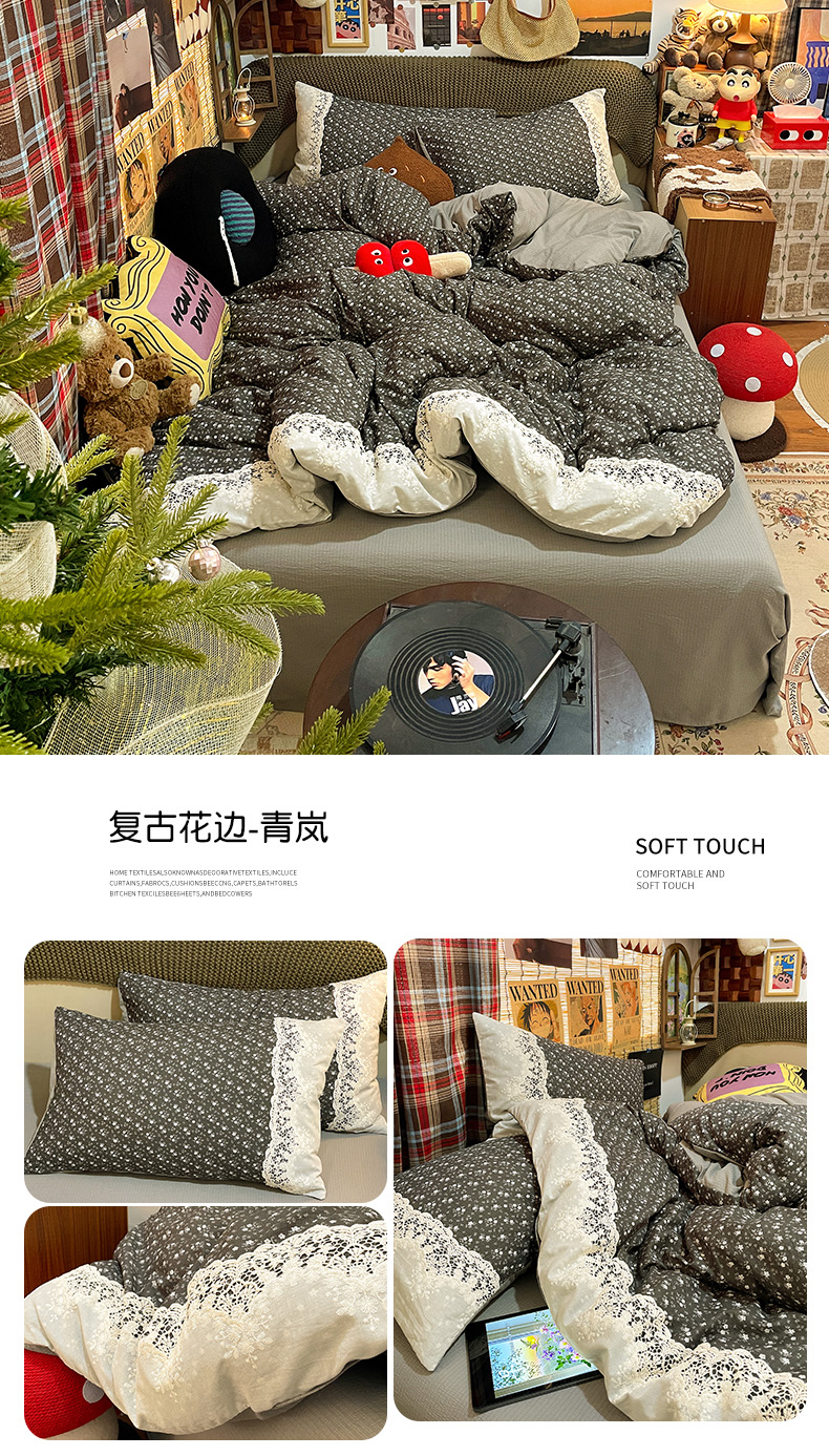 当前位置: 91家纺网 > 商品网购 > 床品套件 > 四件套 > 化纤普通四件套 > 水墨江南 2026新款甜美复古花边四件套 复古花边-烟青