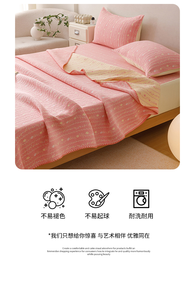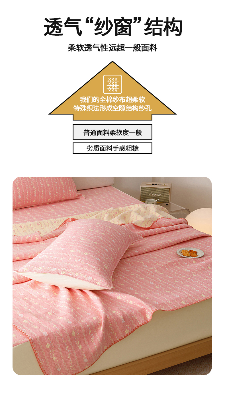 (总)悦然毛巾被 2026新款水洗三层纱布全棉床笠套件床单夹棉床罩A类单床笠床笠单件,空境粉,空境灰,晴粉,晴灰,晴蓝,组合图仅供展示-不可下单
