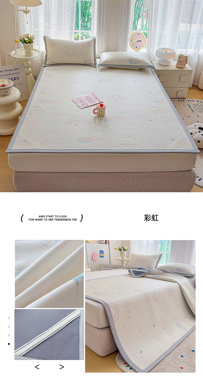 (总)小萌虎 2026年新款乙纶PE提花冰豆豆凉席床笠款卡通,草莓粉,彩虹粉,灰格,腊肠犬-咖,腊肠犬-蓝,小美熊,摇摇马-粉,摇摇马-蓝