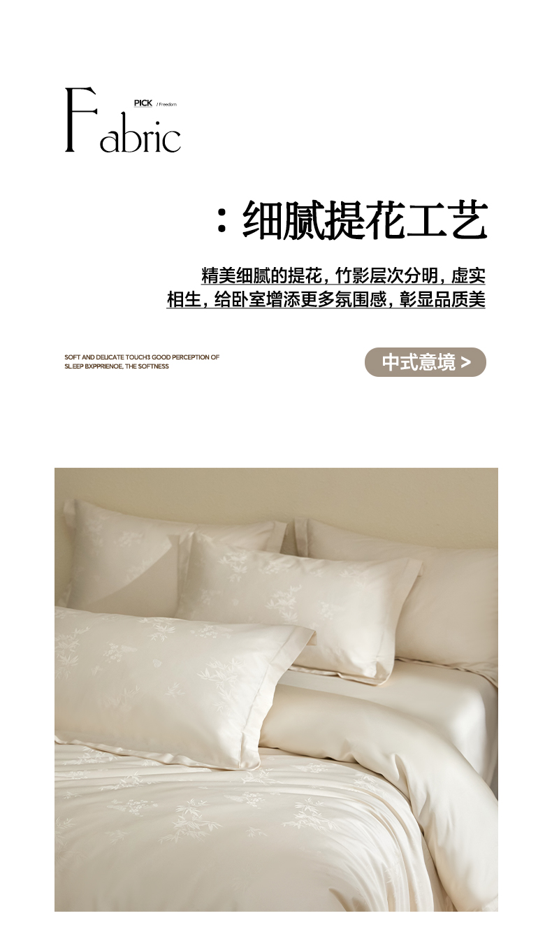 当前位置: 91家纺网 > 商品网购 > 床品套件 > 四件套 > 婚庆四件套 > 欧乐蒂 2026新款亲肤棉提花四件套竹影系列 竹影-白昔