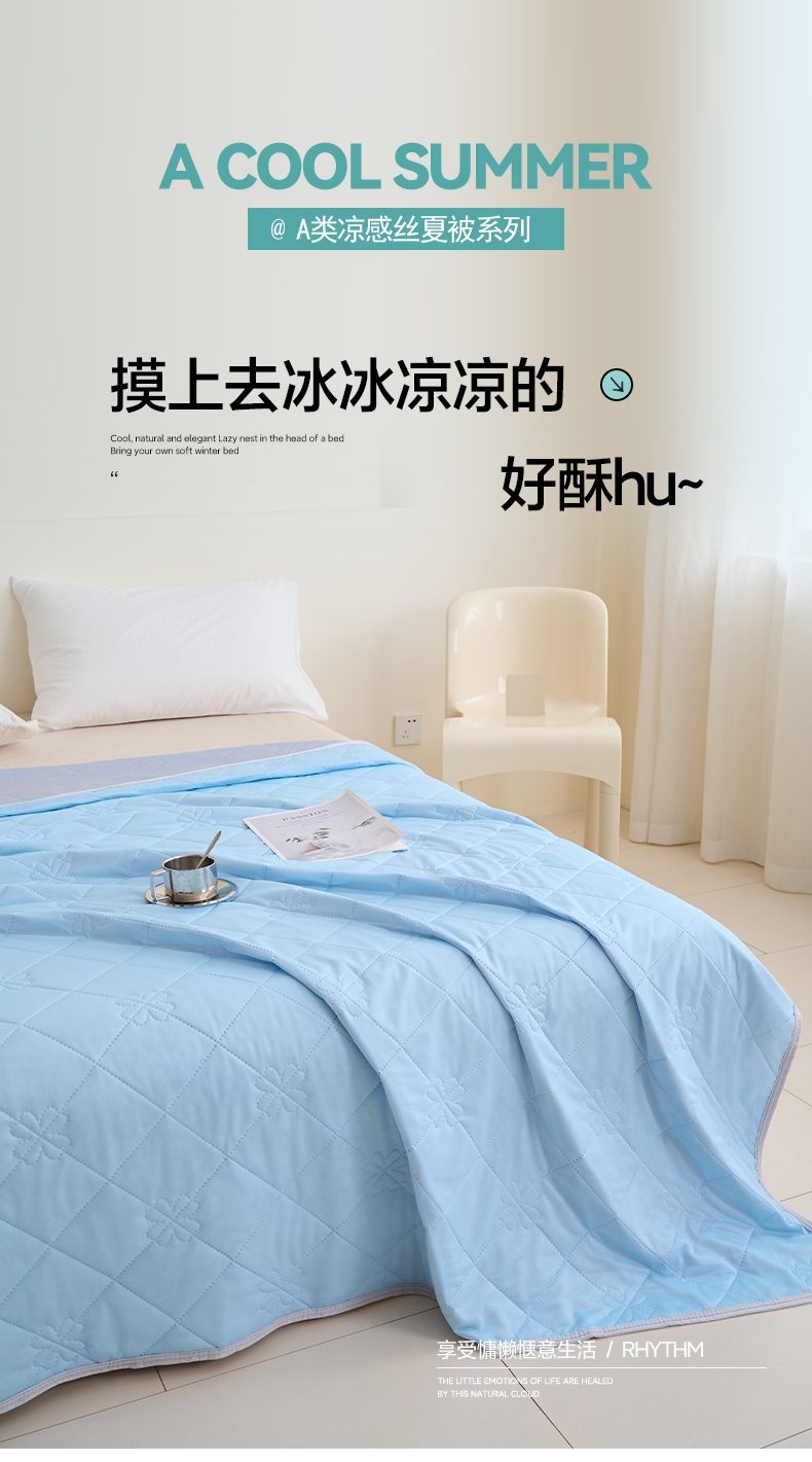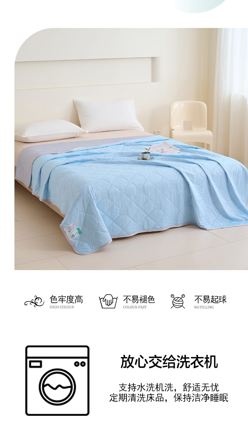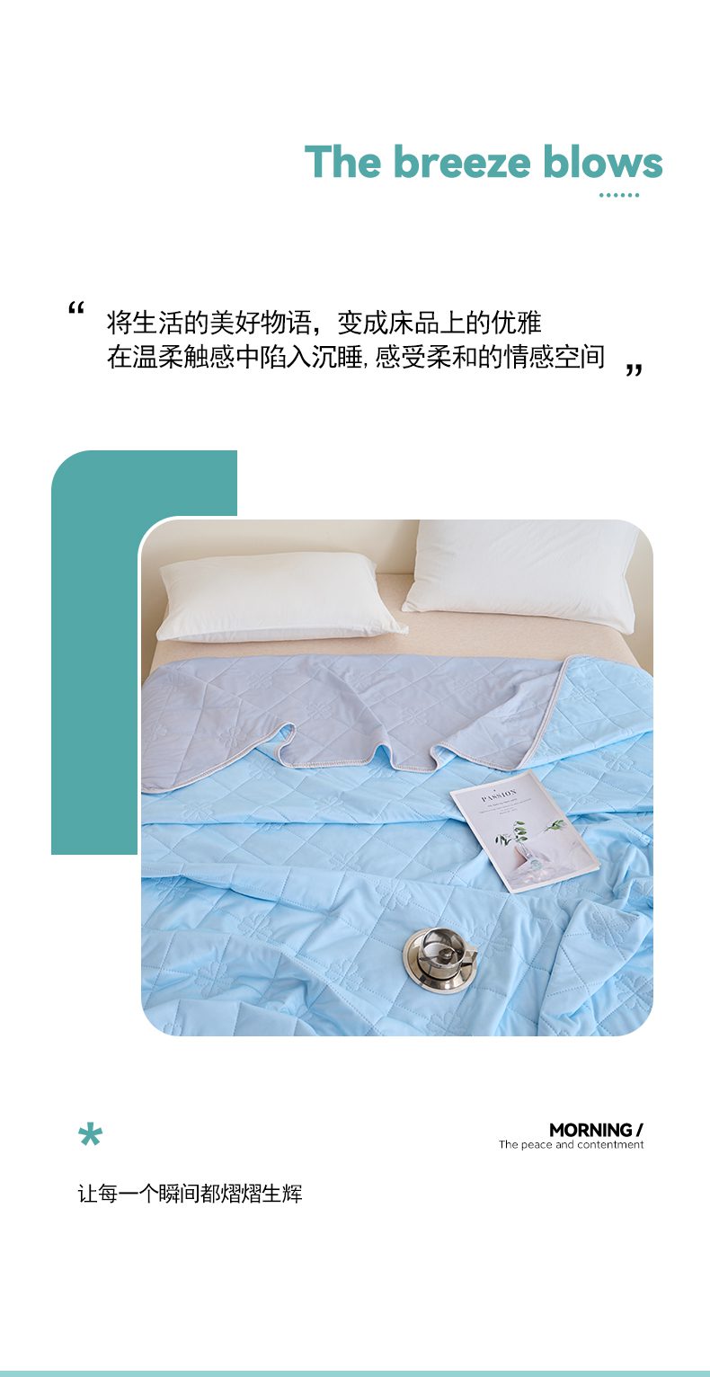 商品名称:畅销被业 2026新款跨境外贸凉感丝纯色压花夏被系列 天蓝