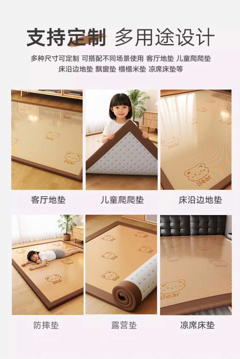 (总)席佬大 2026新款2cm凉席席子地垫冰藤地垫客厅打地铺-甜蜜熊,咖色,粉色,灰色,蓝色