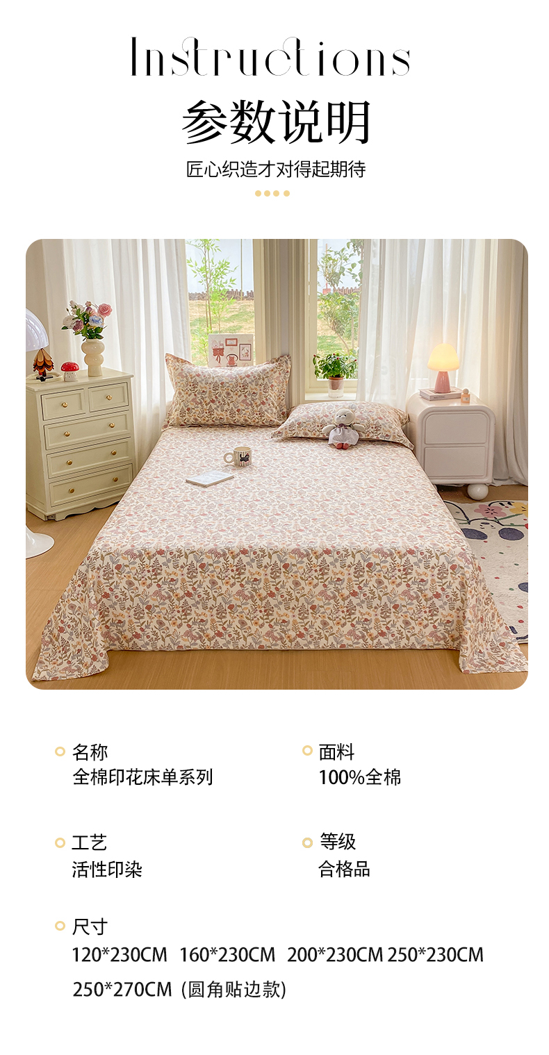 (总)女子家纺 2026新款全棉纯棉印花花卉款床单单品床单单件,安暖如夏,京都花园,花丛甜崽,荷叶邮差,复古诗笺,动物花园,春游手记,花仙兔兔,蓝沫,洛克庄园红,玫瑰小狗,妙趣乐园,普罗旺斯,俏佳人,青绿银杏,柔色花笺,苏糖粉,苏糖咖,甜蜜纪念日,童话花町,微花耳耳粉,微花耳耳蓝,温柔花朵熊,芜晴花紫,星辰蔷薇,徐徐花开,油画弦音,玉笛花间,栀子花语,自然手记粉