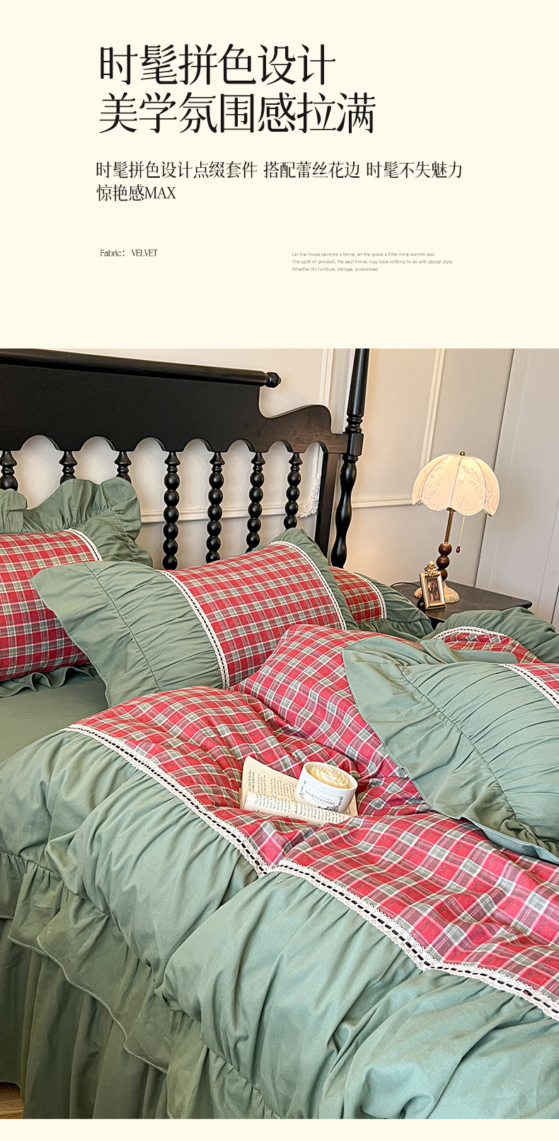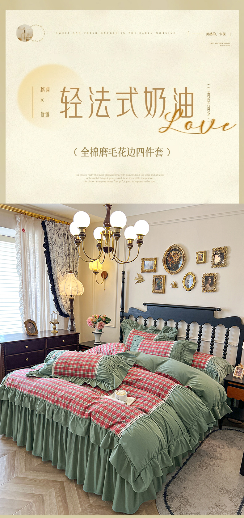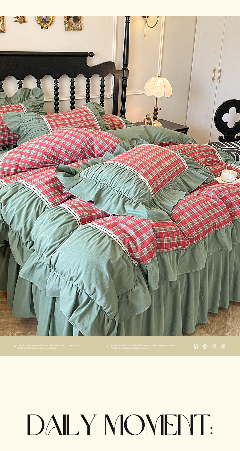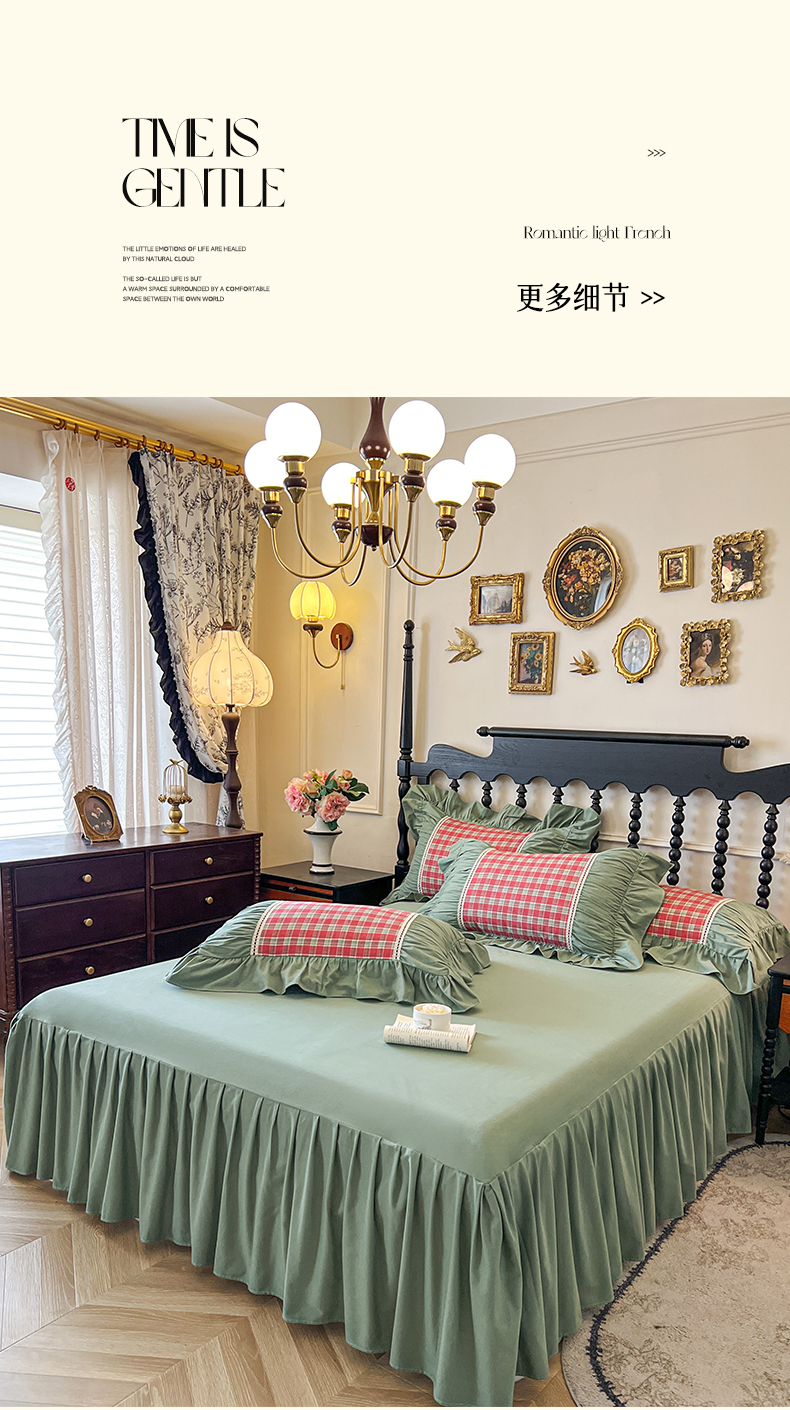 (总)好儿喜家纺 2026新款纯棉磨毛法式花边床裙四件套-凝香,凝香