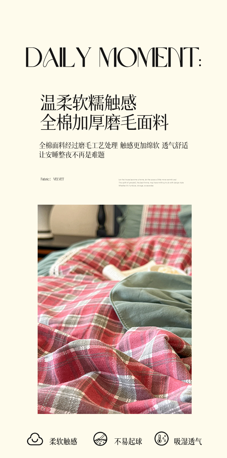 (总)好儿喜 2024新款莫妮卡牛奶绒四件套,果绿,米色,浅粉