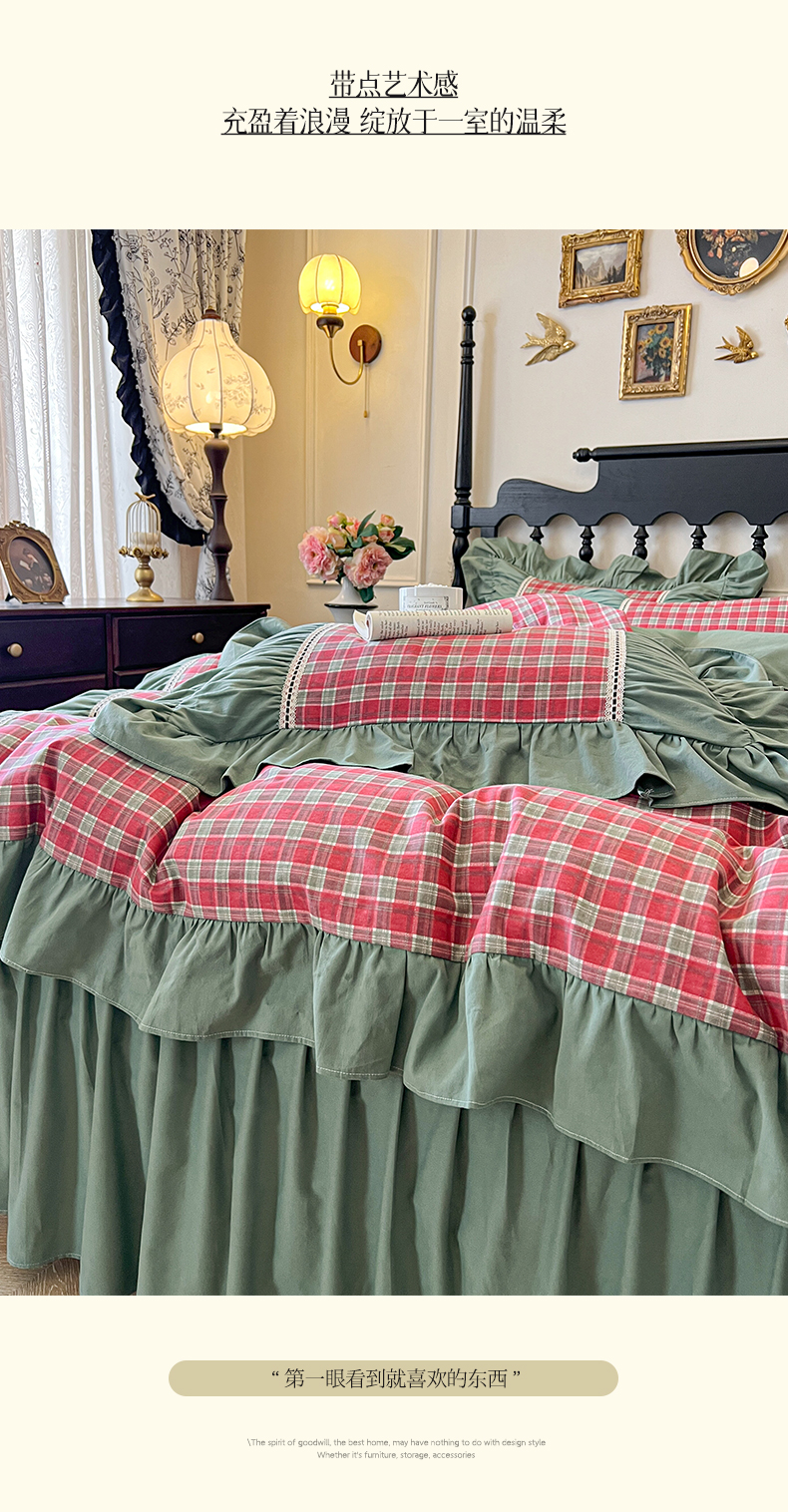 (总)好儿喜家纺 2026新款棉麻纯棉法式花边床裙四件套-梦镜,梦镜