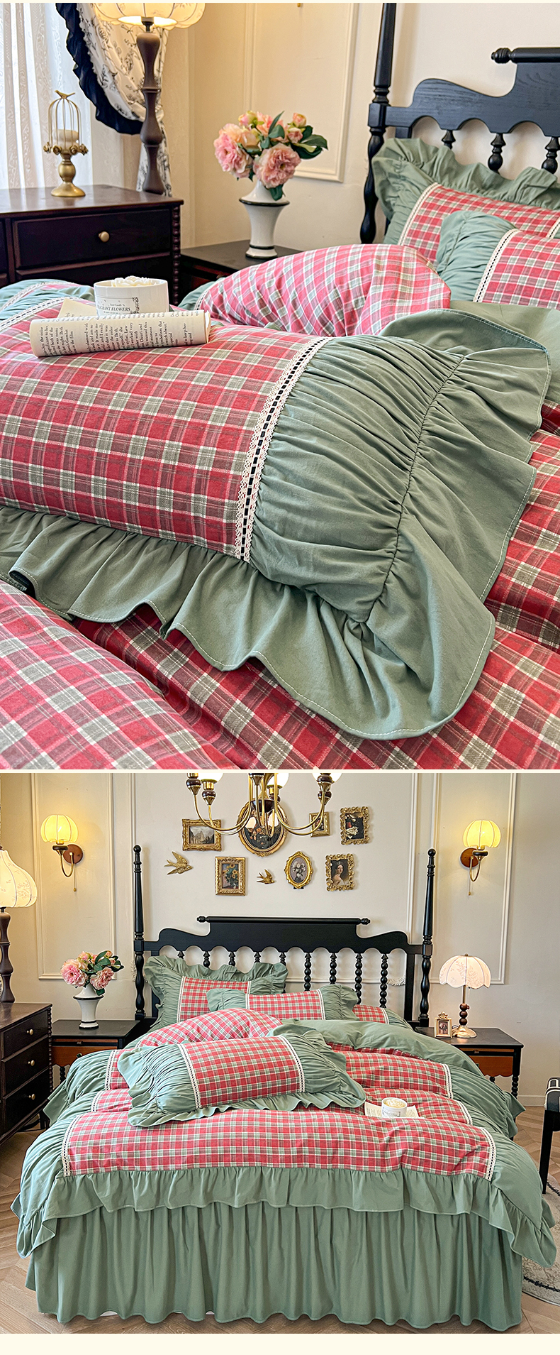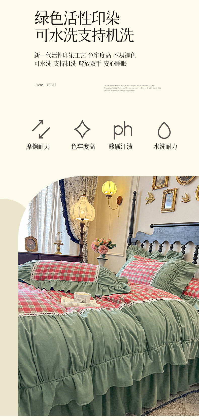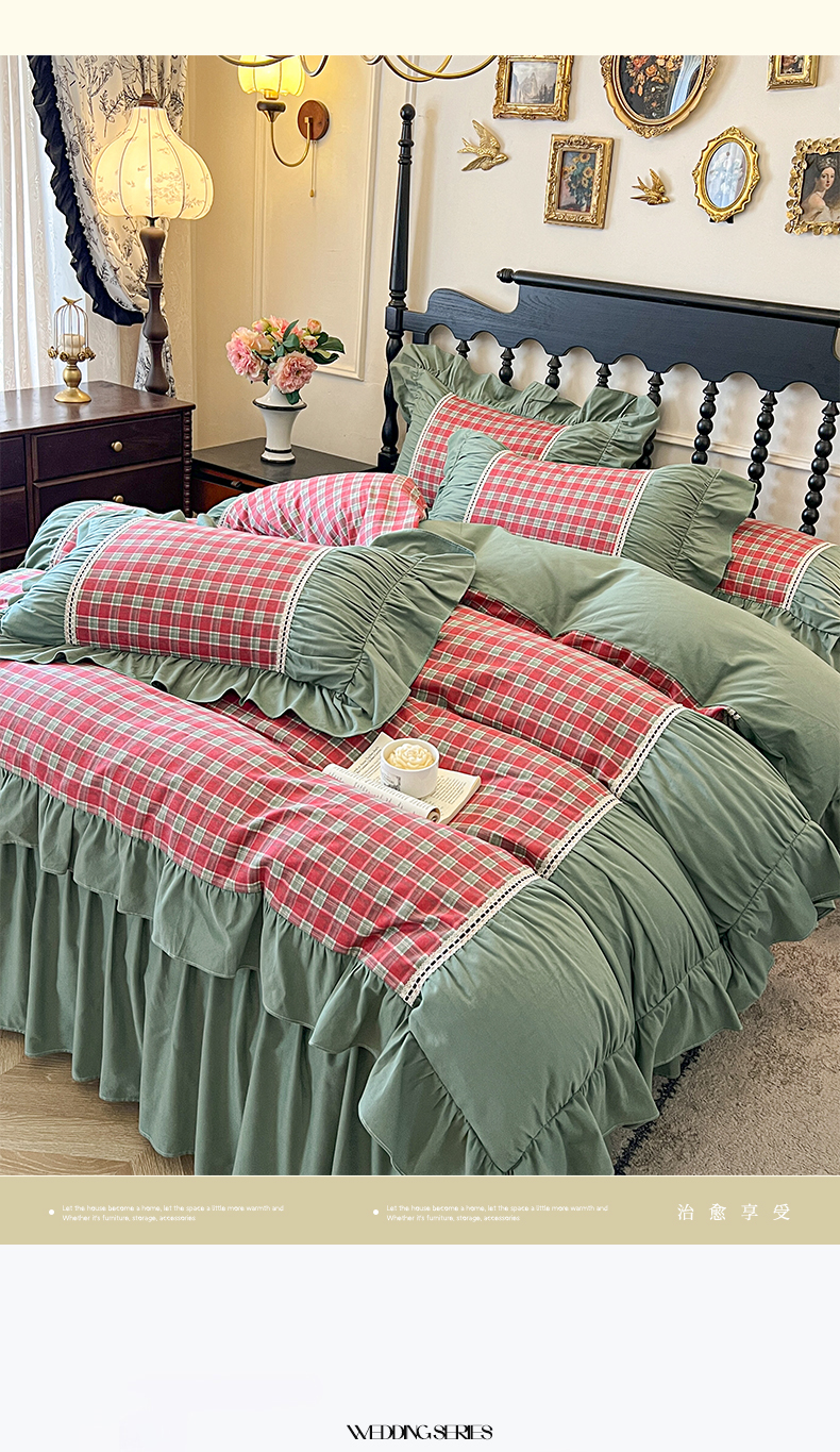 (总)好儿喜家纺 2026新款纯棉磨毛法式花边床裙四件套-秘密花园,秘密花园