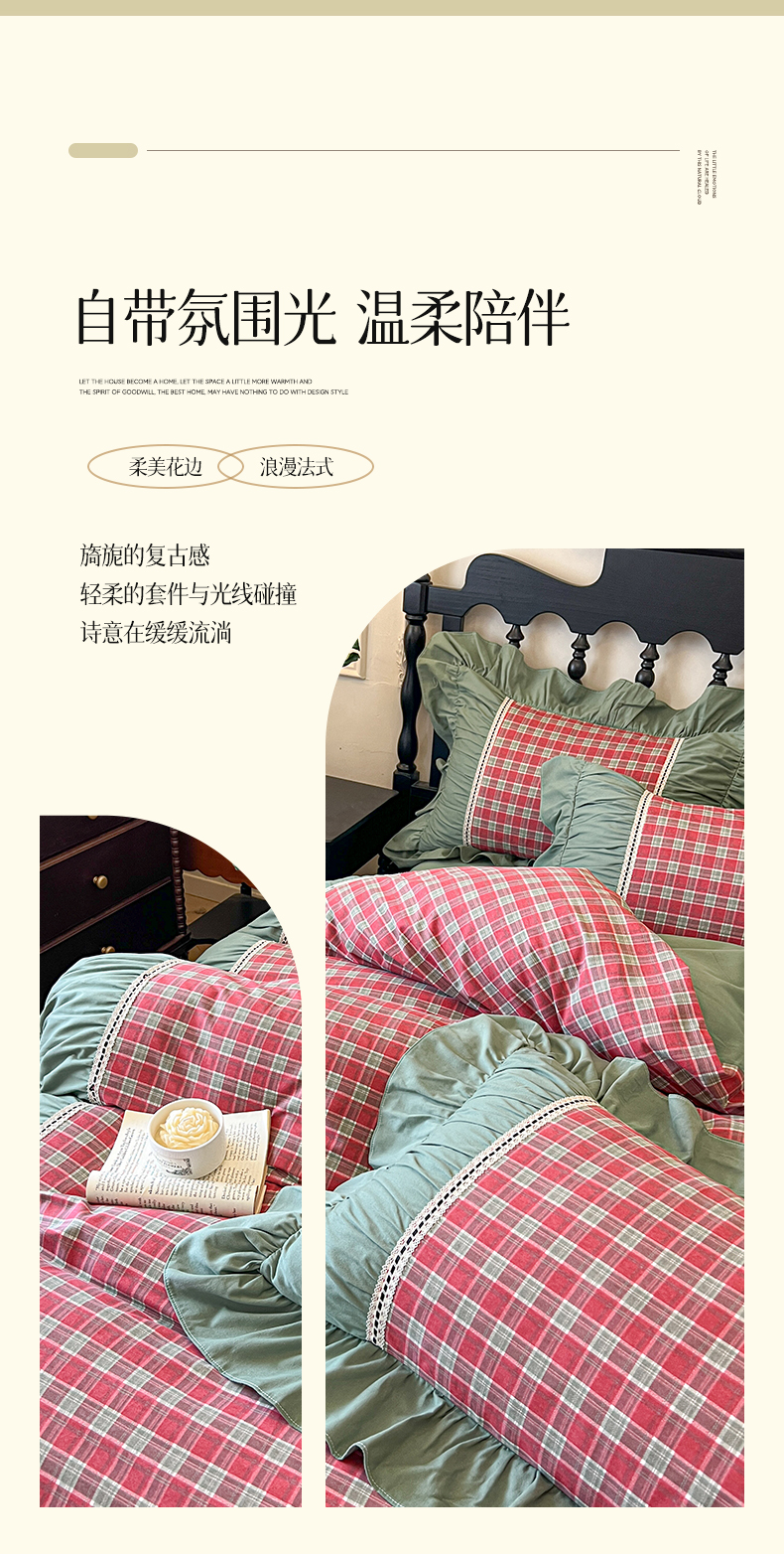 (总)好儿喜家纺 2026新款纯棉棉麻花边四件套-雅韵,雅韵