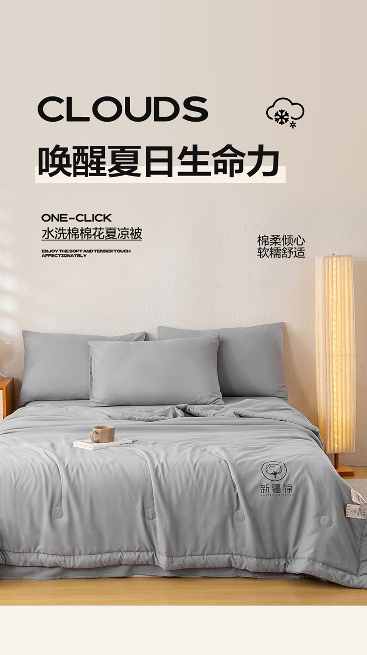 商品名称:憨豆家纺 2026春夏新款 水洗棉纯色双拼棉花被夏凉被空调被(常年有货款) 棉朵-简约灰