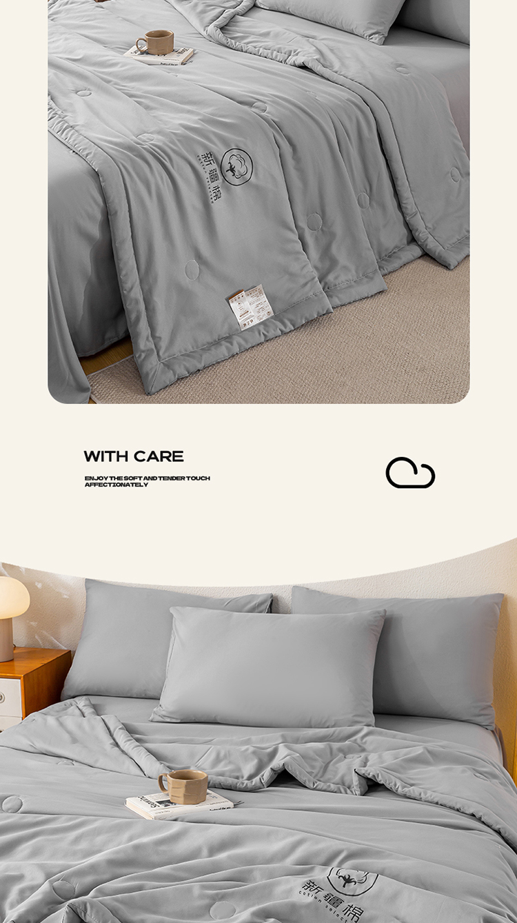 憨豆家纺 2026春夏新款 水洗棉纯色双拼棉花被夏凉被空调被(常年有货款) 棉朵-简约灰