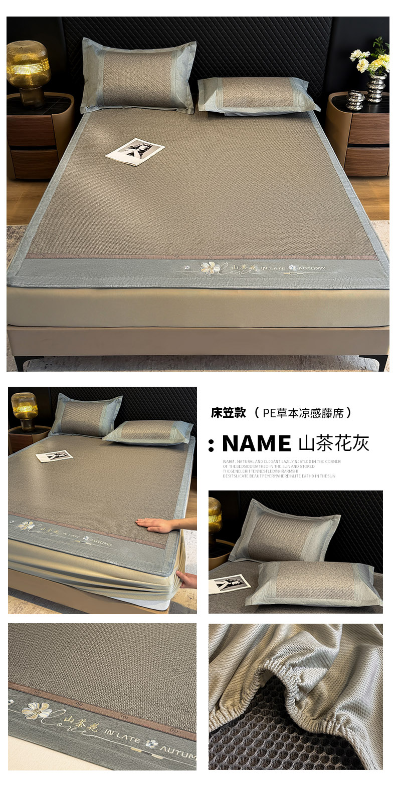 (总)鑫琪莱家纺 2026新款PE草本凉感藤席子凉席,艾草灰-床笠款,艾草咖-床笠款,艾草蓝-床笠款,山茶花灰-床笠款,山茶花咖-床笠款,山茶花蓝-床笠款,艾草灰-床席款,艾草咖-床席款,艾草蓝-床席款,经典咖-床席款,山茶花灰-床席款,山茶花咖-床席款,山茶花蓝-床席款