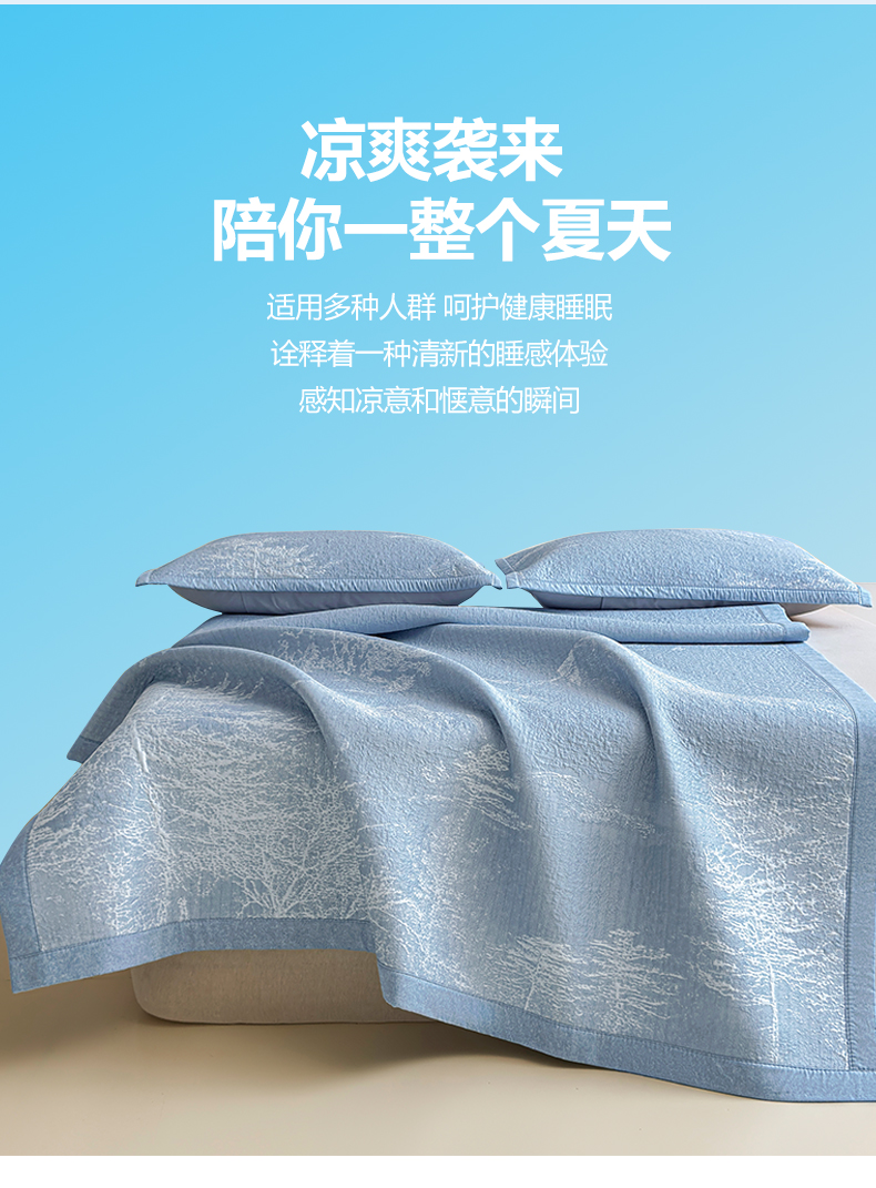 当前位置: 91家纺网 > 商品网购 > 床上用品 > 凉席 > 凉席套件 > 慕木家纺 2026新品高端复合三明治PE乙纶双面提花610克冰豆豆凉席水墨丹青系列(提供买家秀) 床席款水墨丹青-蓝
