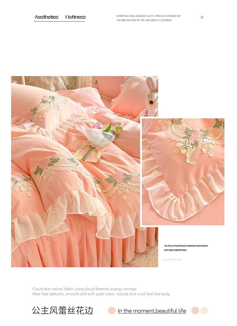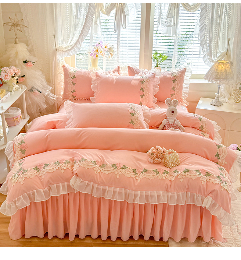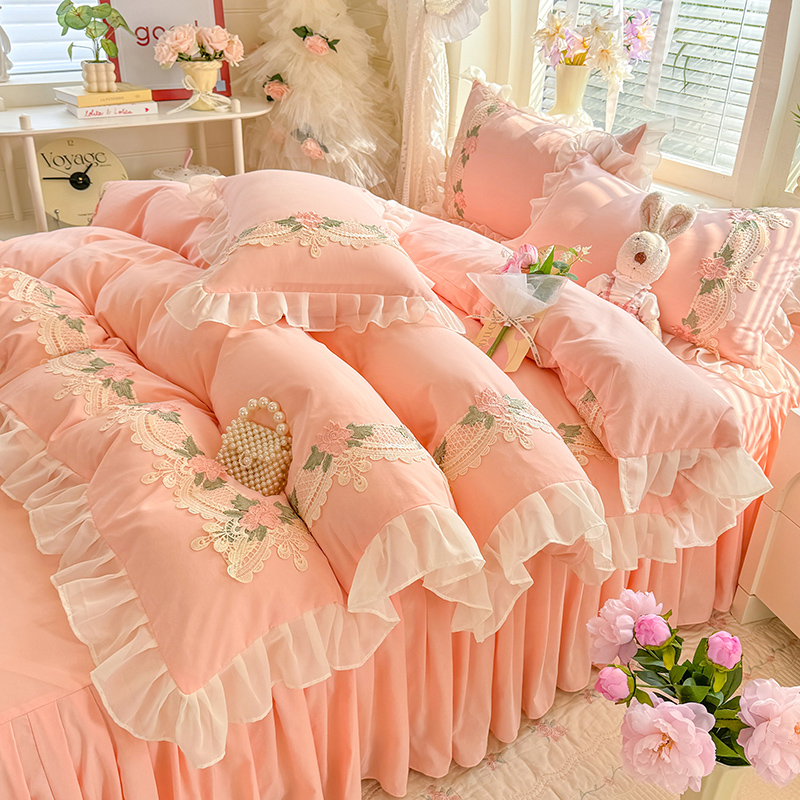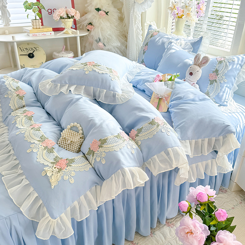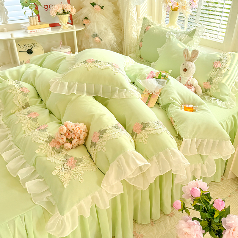 当前位置: 91家纺网 > 商品网购 > 床品套件 > 四件套 > 其它四件套 > 后庭寝室 2026新款水溶花边床裙四件套-爱恋系列 爱恋-玉