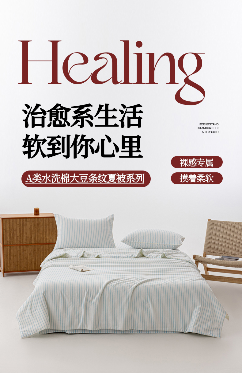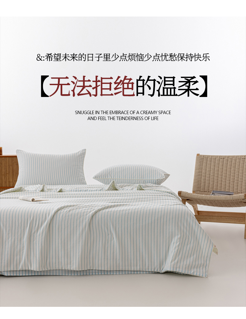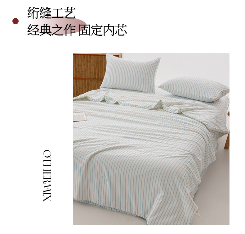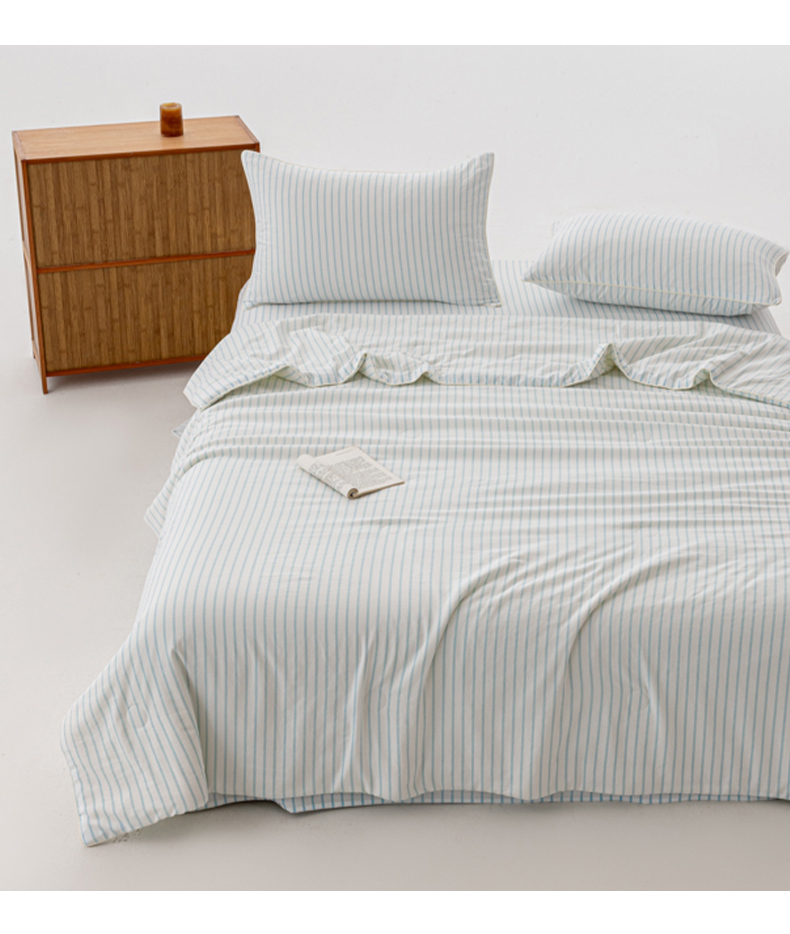被子 > 夏被 > 迪梵家纺 2026新款A类无印风水洗棉条纹大豆夏凉被夏被空调被薄被子被子被芯(带买家秀) 条纹-蓝