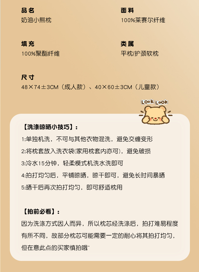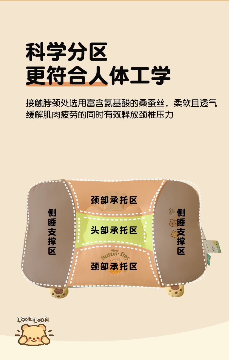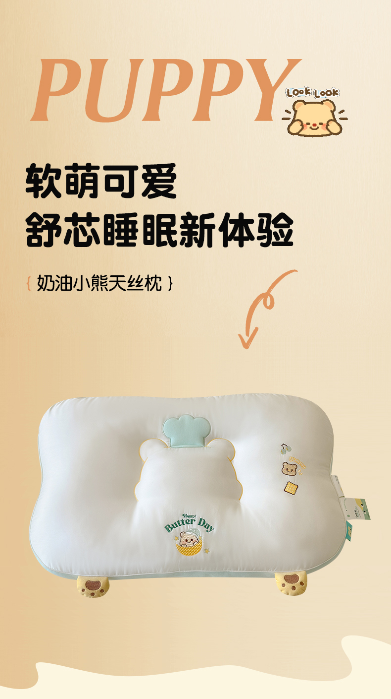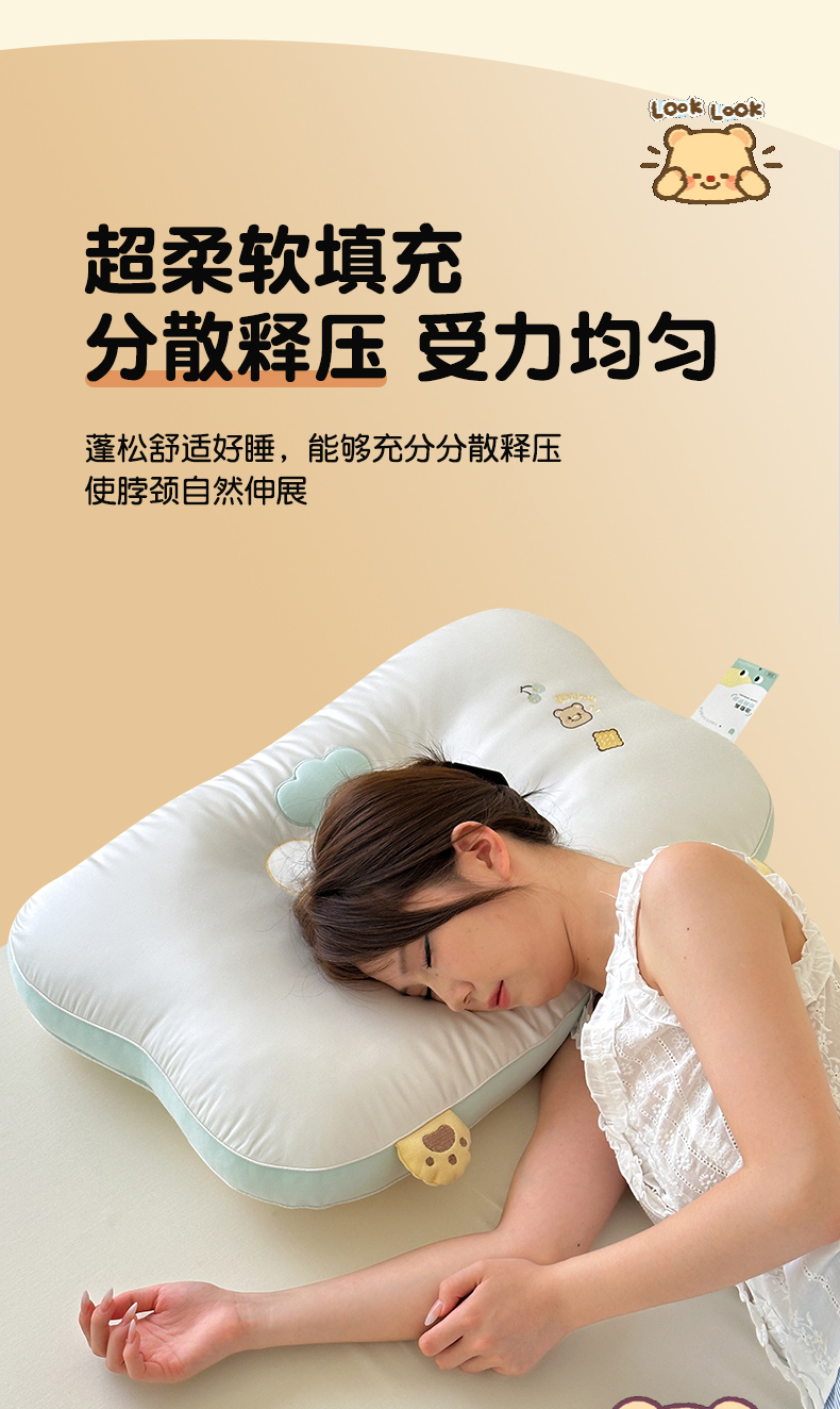 商品名称:(总)北鸣有鱼枕芯馆 2026新款亲肤护颈分曲奶油小熊枕 枕头枕芯