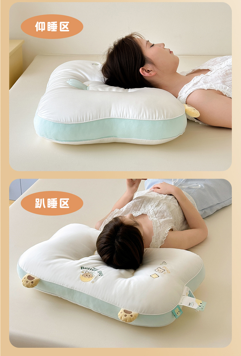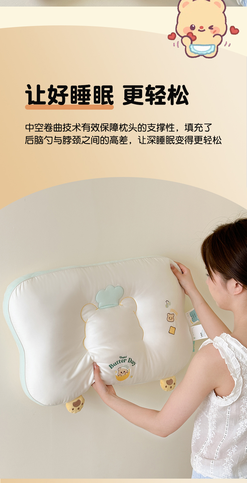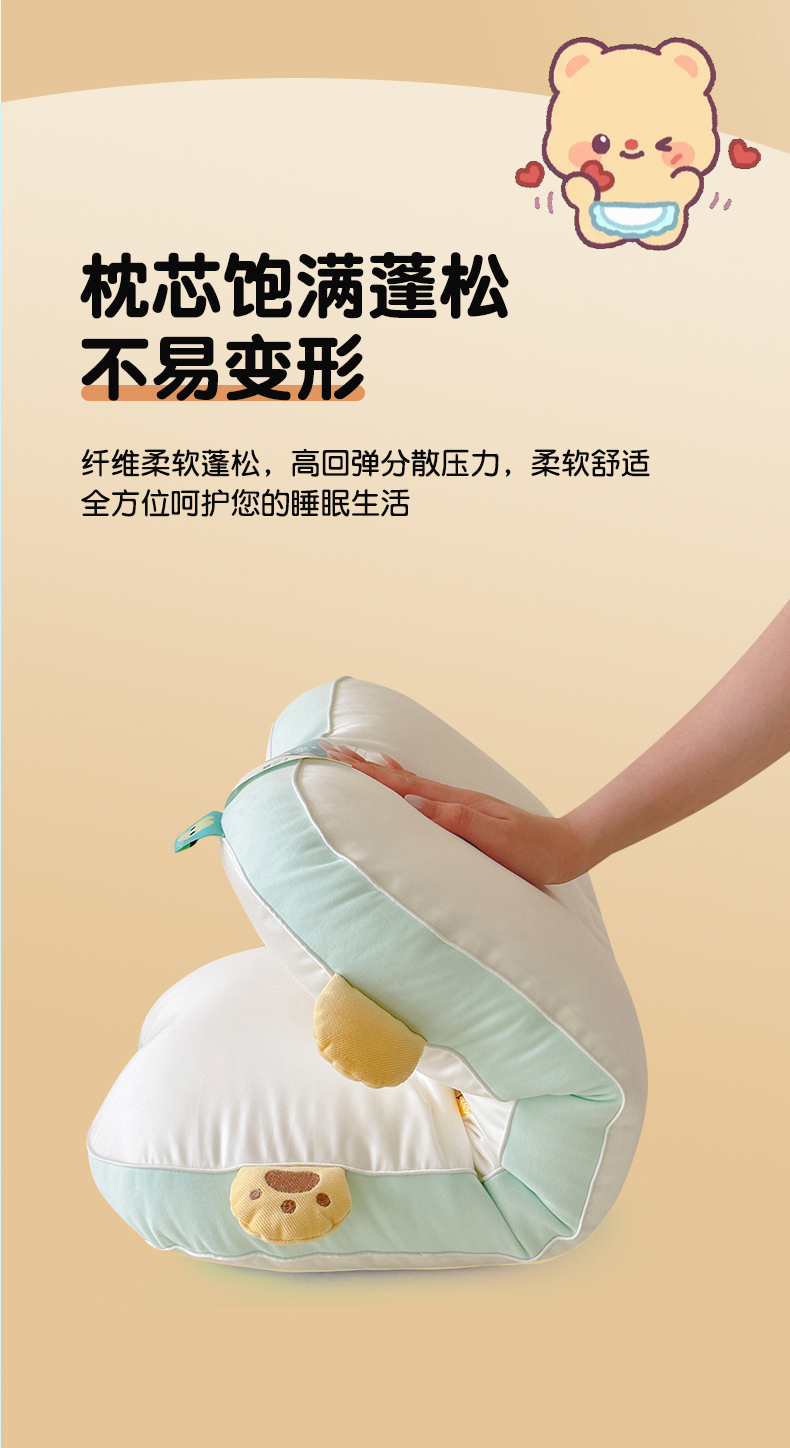 (总)北鸣有鱼枕芯馆 2026新款亲肤护颈分曲奶油小熊枕 枕头枕芯