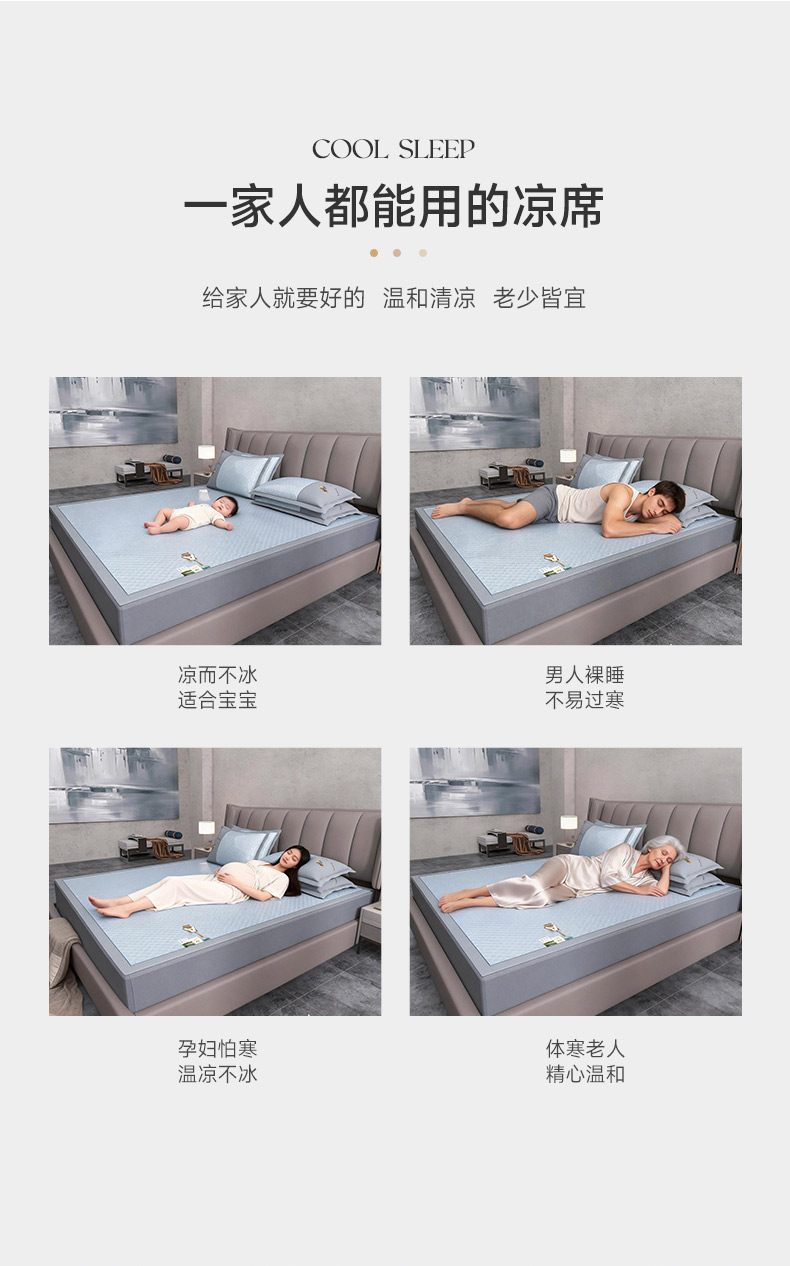 (总)小牛席业 2026新款小清新凉感冰丝席席子凉席,粉色,灰色,蓝色,香槟