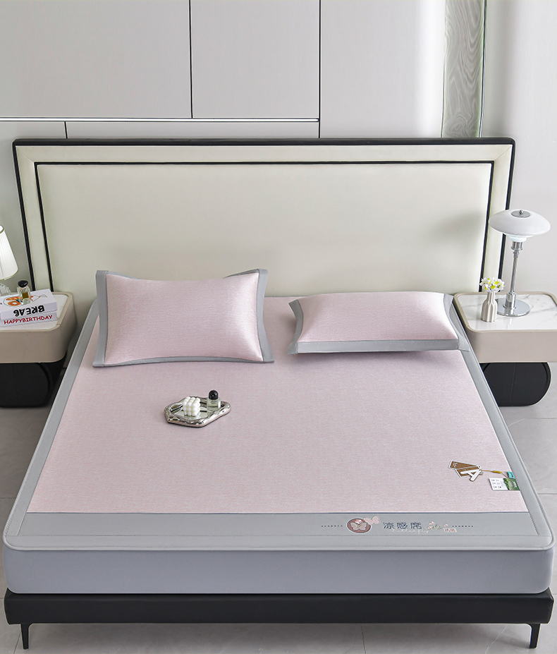 (总)小牛席业 2026新款小清新凉感冰丝席席子凉席,粉色,灰色,蓝色,香槟