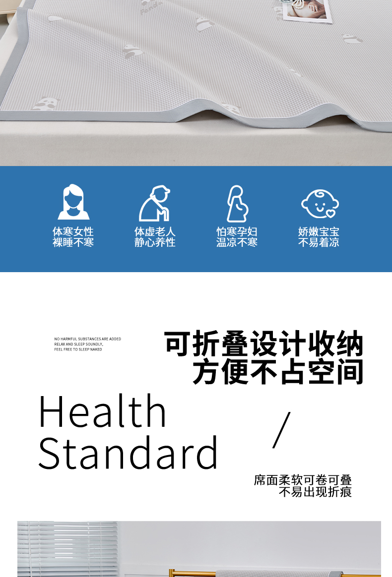 (总)小牛席业 2026新款小清新凉感冰丝席席子凉席,粉色,灰色,蓝色,香槟