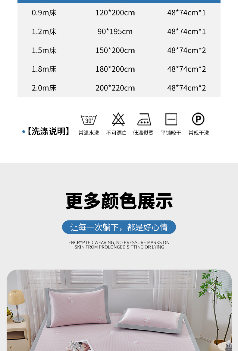 (总)2023新款超精密冰丝席-小斜纹系列-床笠款藤席凉席竹席,粉色,蓝色,绿色,银灰