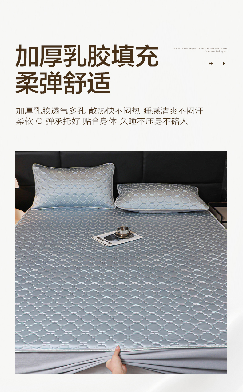商品名称:多乐家纺 2026新款水光冰丝绸锦氨冰皮加厚乳胶凉席席子 气质灰-床席款