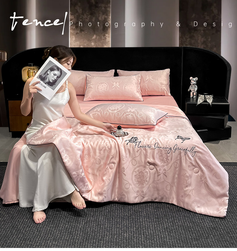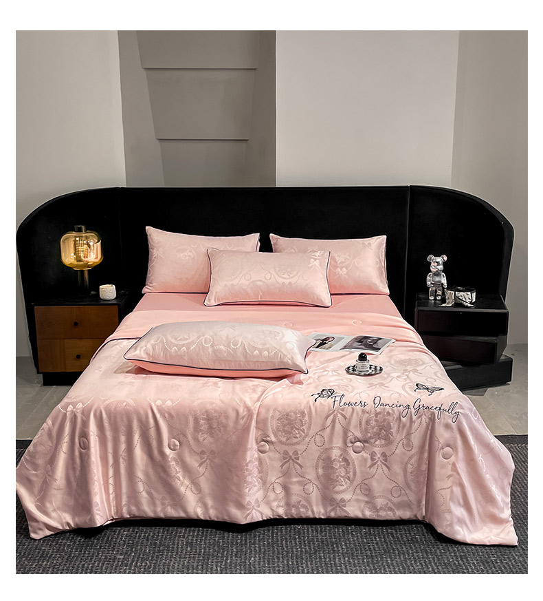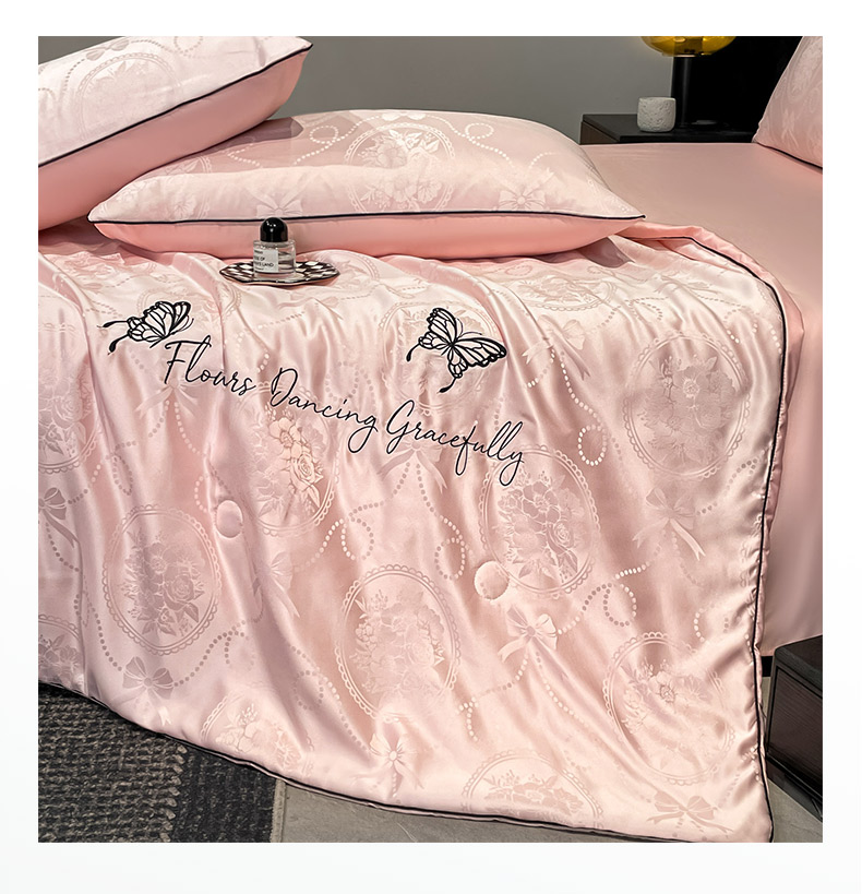 慕澄家纺 2026新款水洗真丝天丝提花刺绣夏凉被空调被夏被四件套-蝶影 蝶影-蔷薇粉
